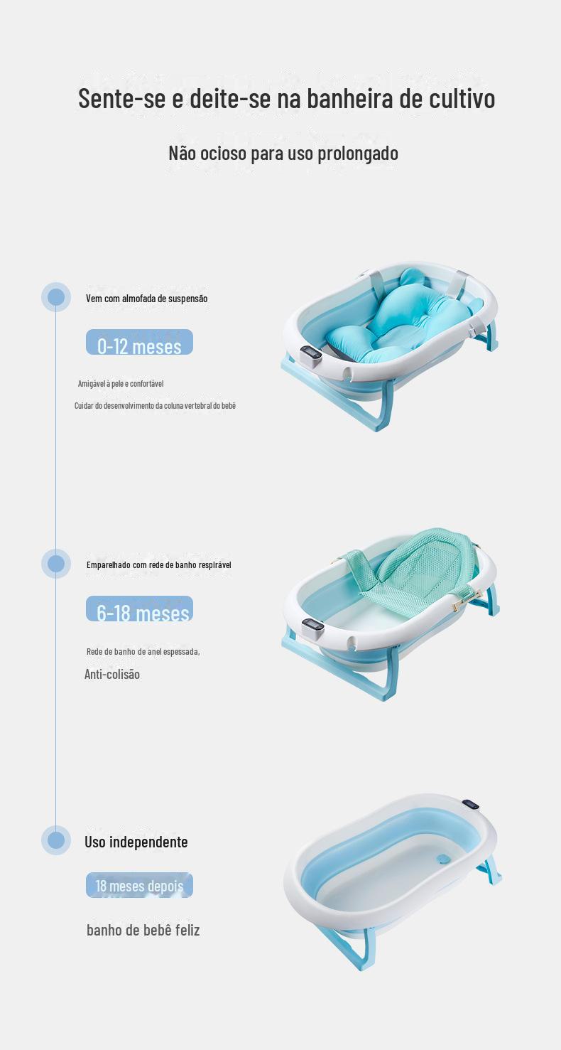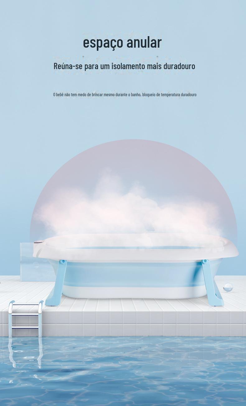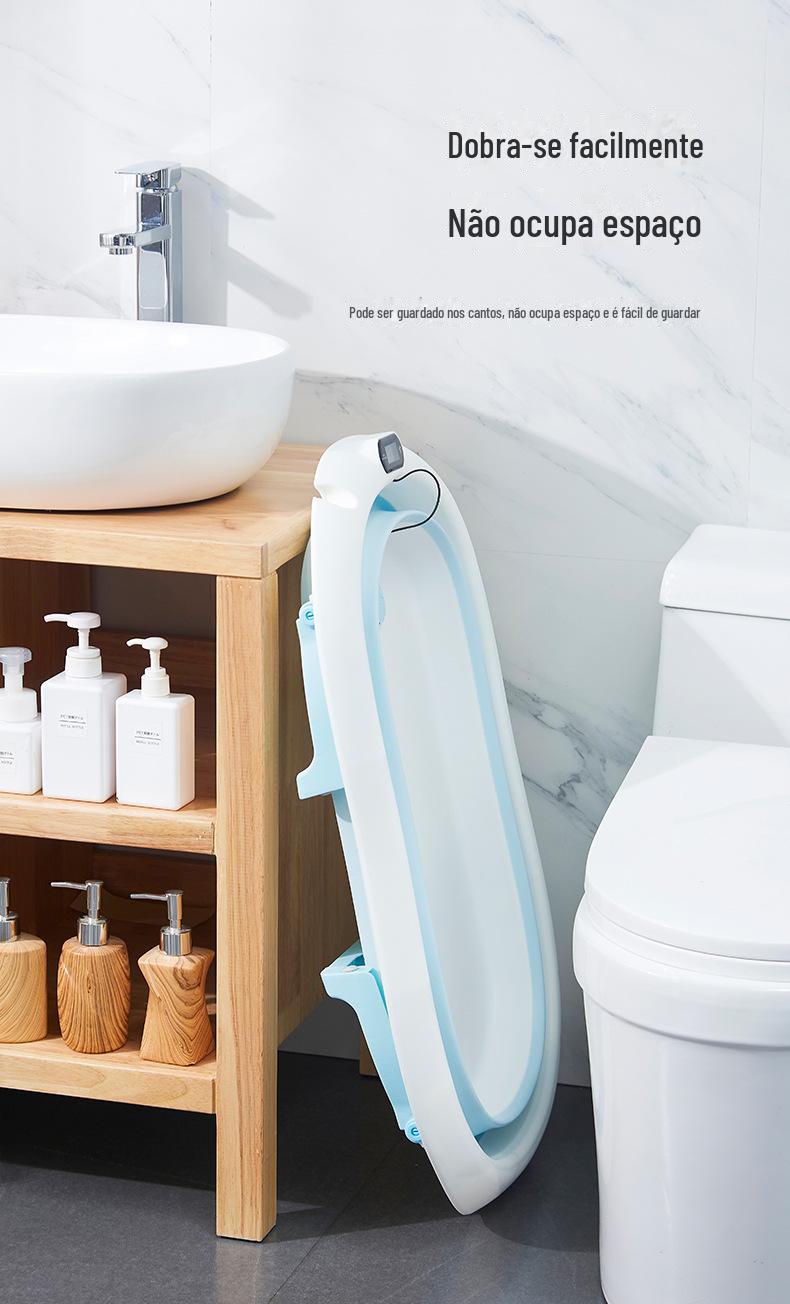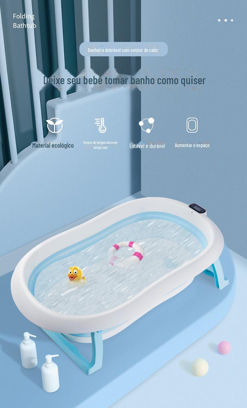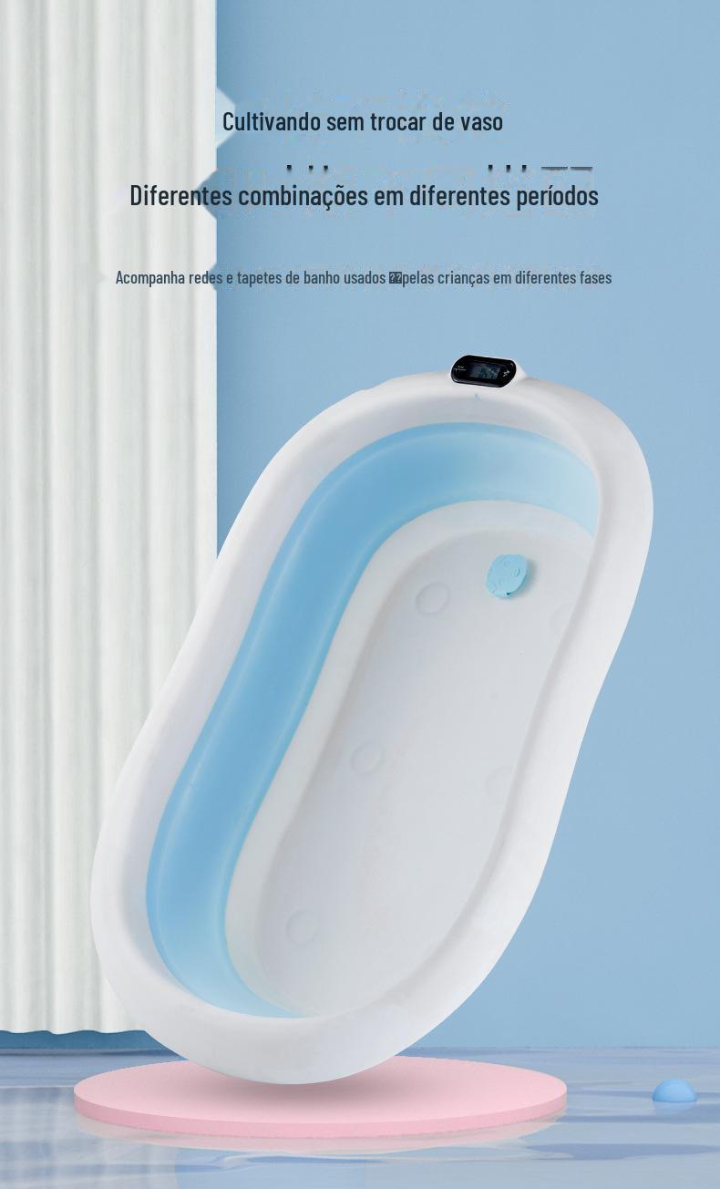 Balde de Banho Dobrável Infantil, Banheira de Bebê, Banheira de Imersão, Medição de Temperatura, Seguro para Sentar e Deitar, Isolante Térmico, Material Ecológico