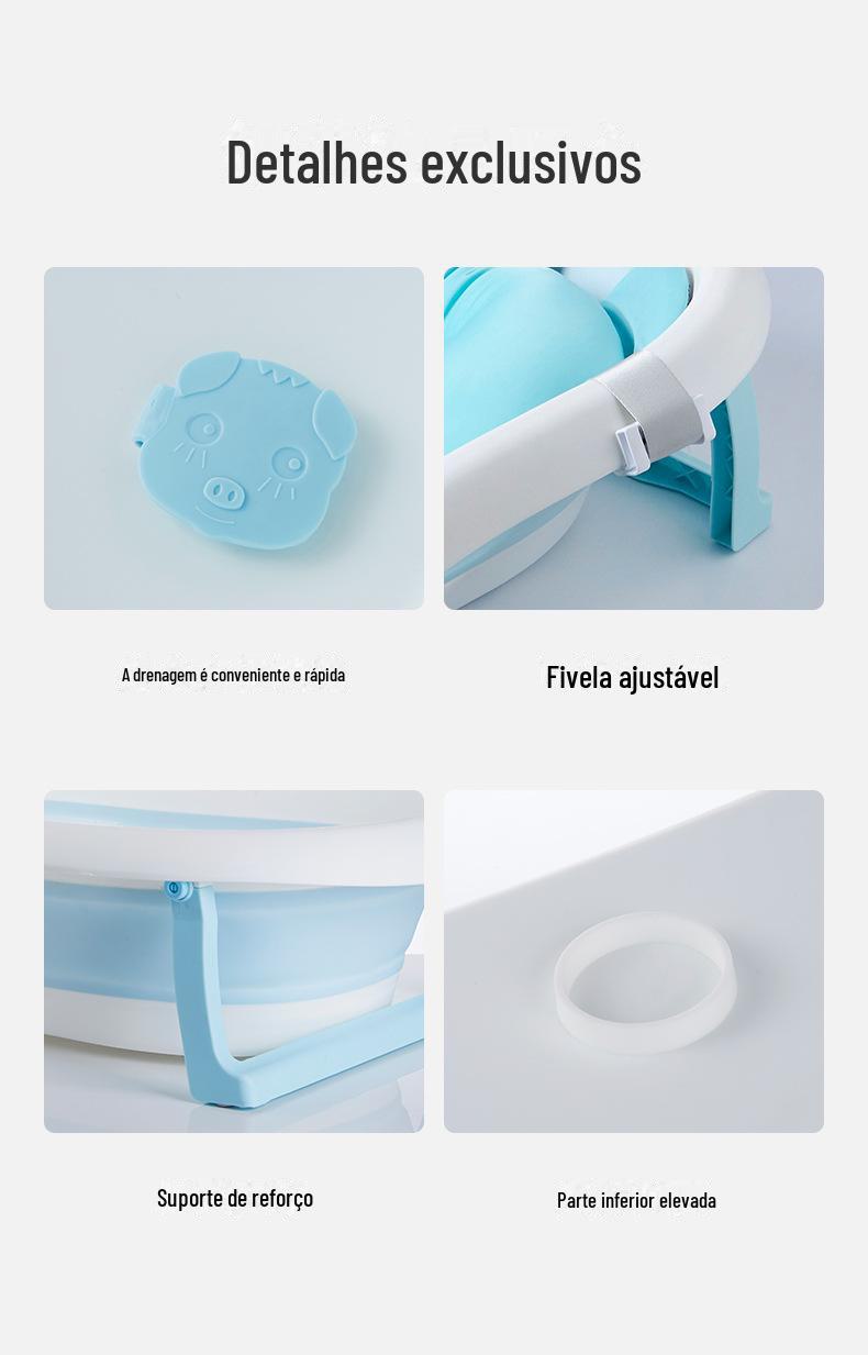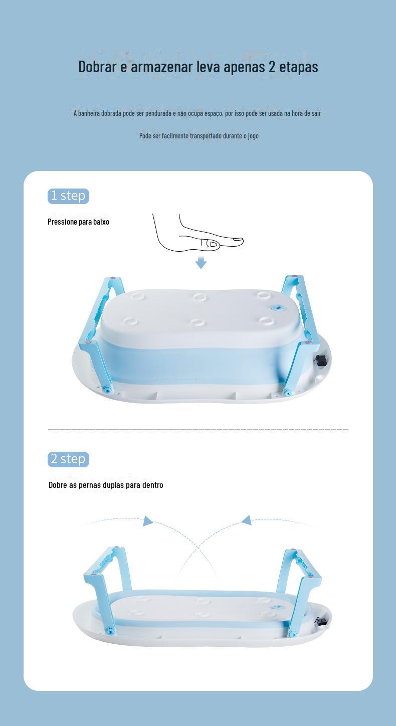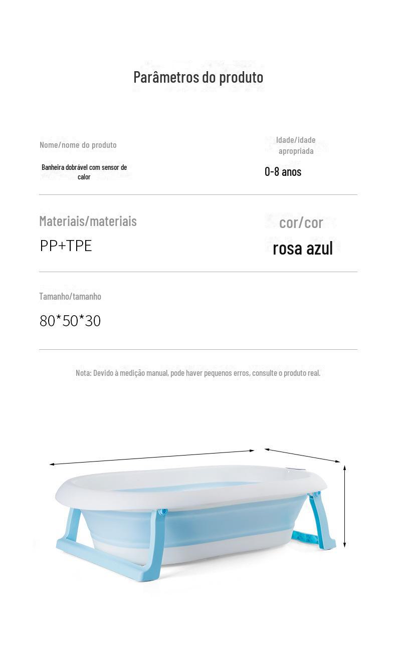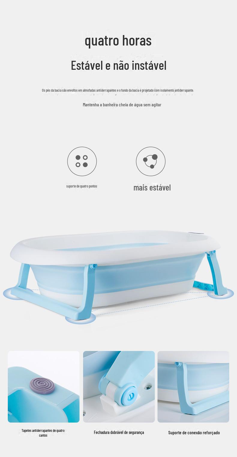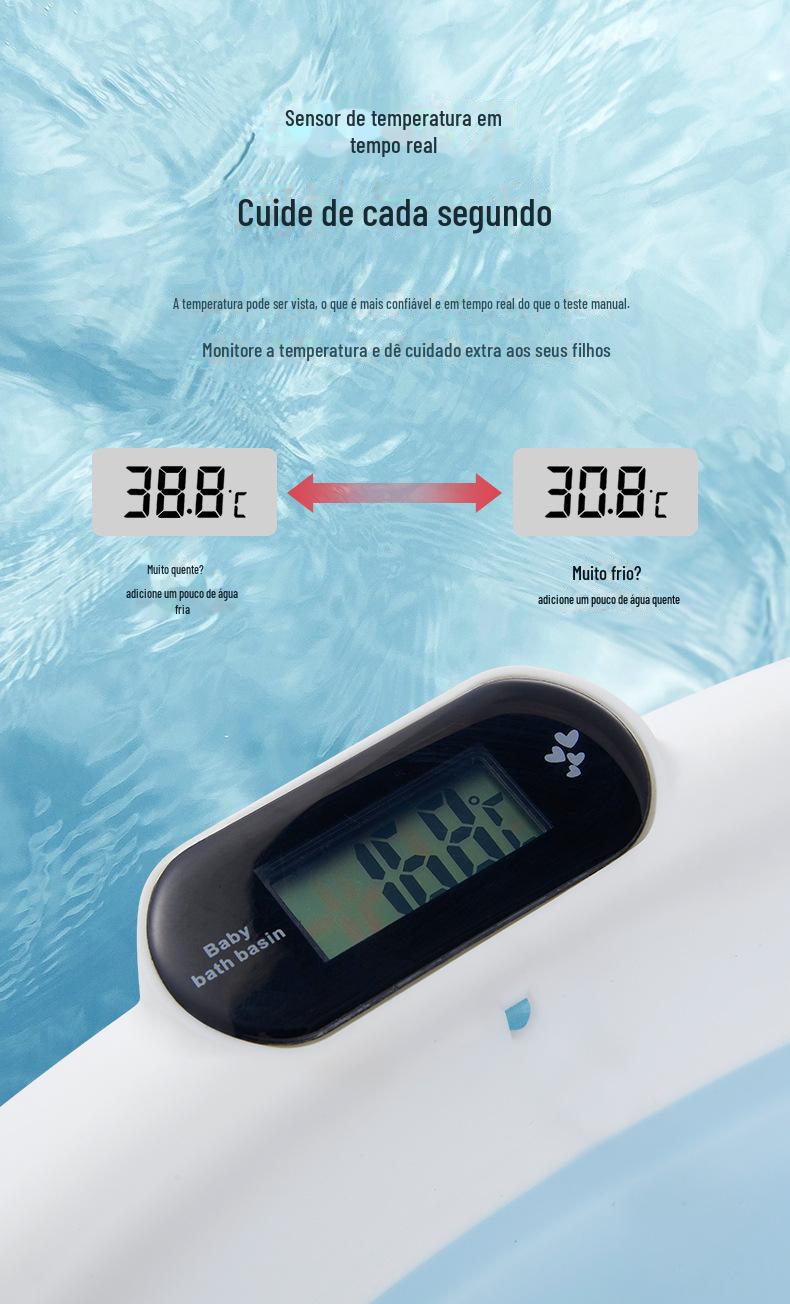 Balde de Banho Dobrável Infantil, Banheira de Bebê, Banheira de Imersão, Medição de Temperatura, Seguro para Sentar e Deitar, Isolante Térmico, Material Ecológico