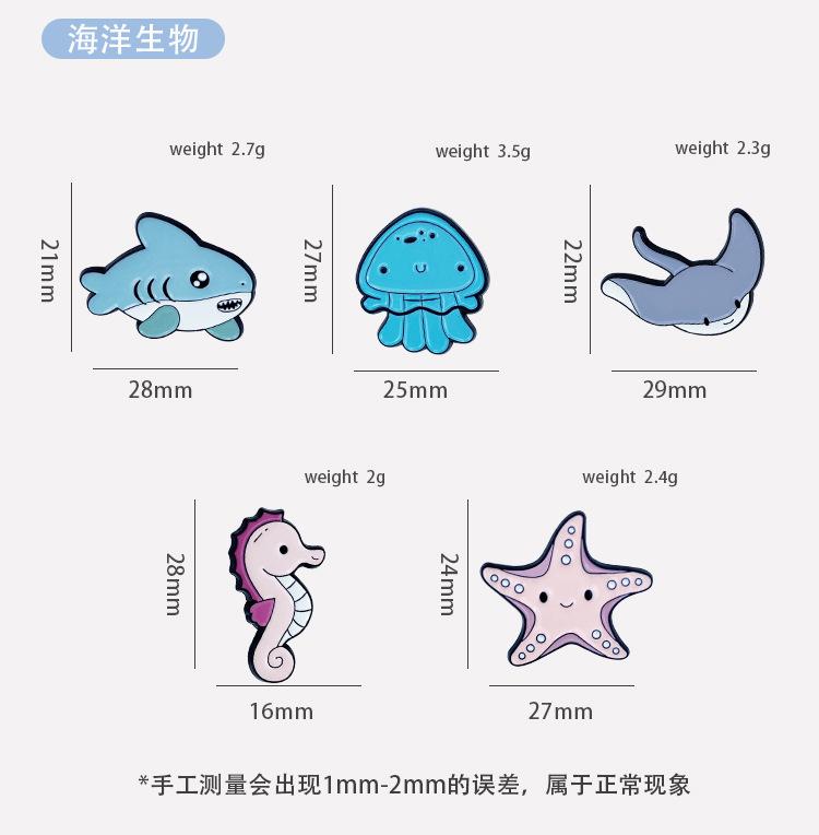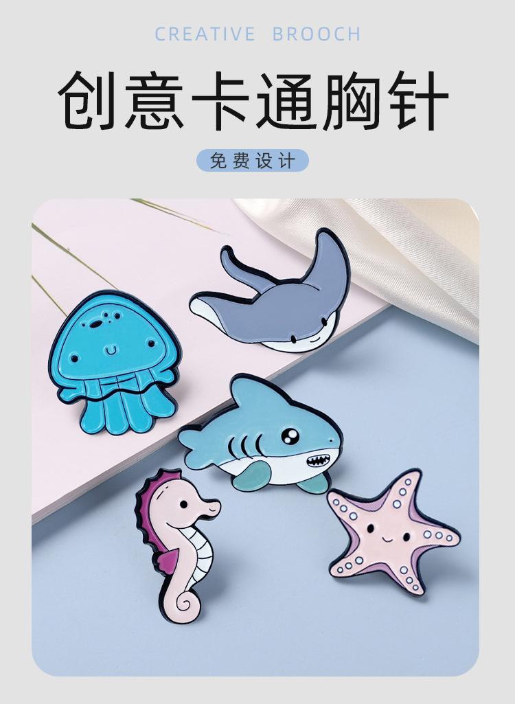 Vida marinha série pintura broche tubarão água-viva cavalo marinho estrela do mar emblema de roupas saco de metal acessórios