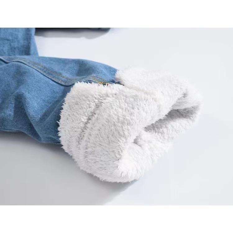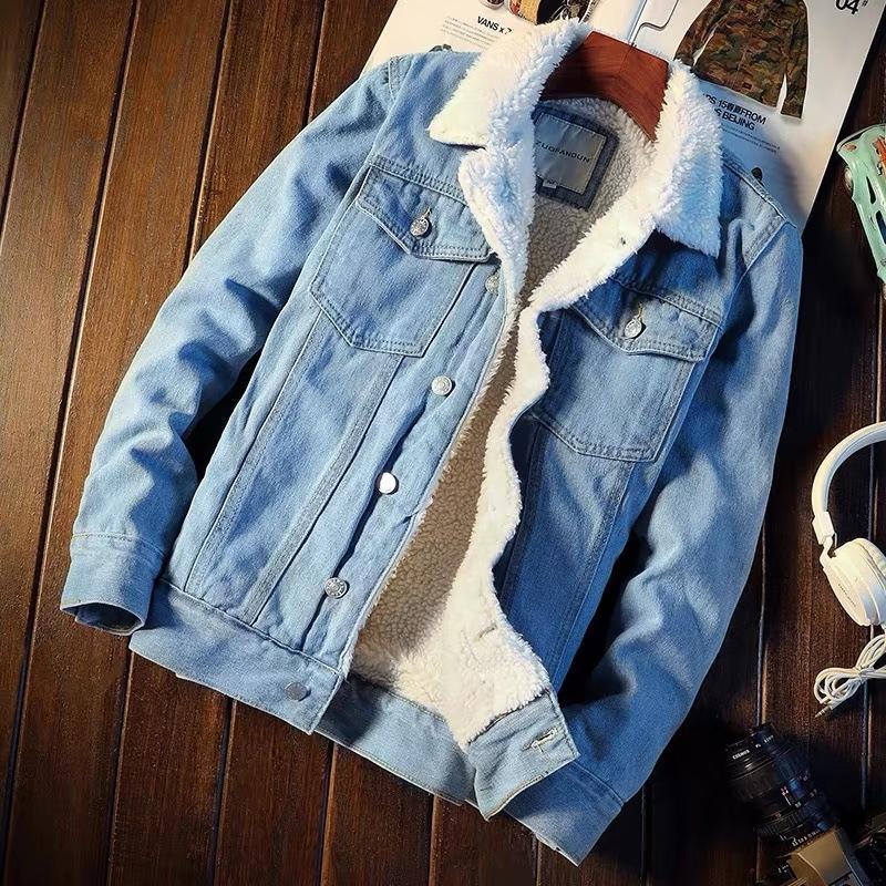 Casaco jeans forrado de lã para inverno, jaqueta masculina de cashmere quente e espessa, jaqueta solta acolchoada de algodão para outono e inverno