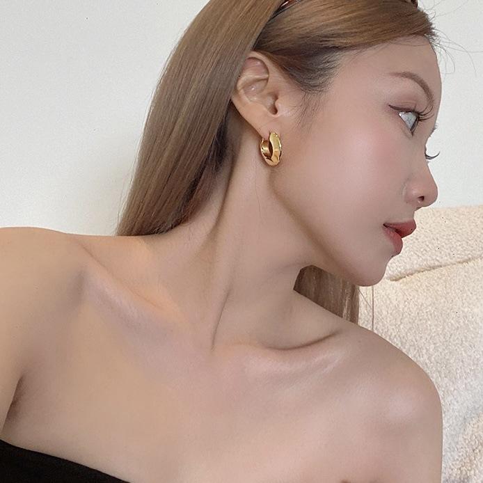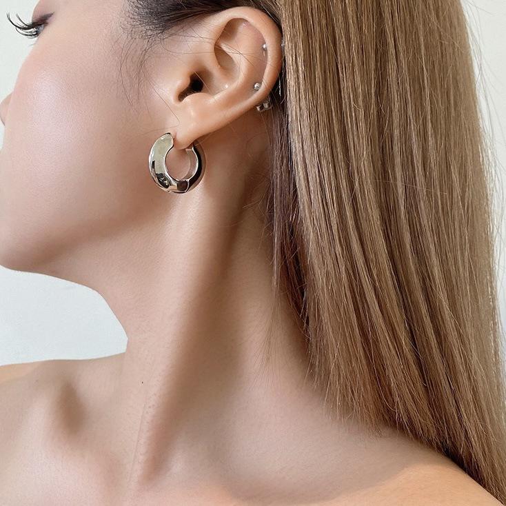 Moda europeia e americana, textura exagerada, brincos circulares simples, nicho simples, estilo frio, personalidade sofisticada, tudo combinando