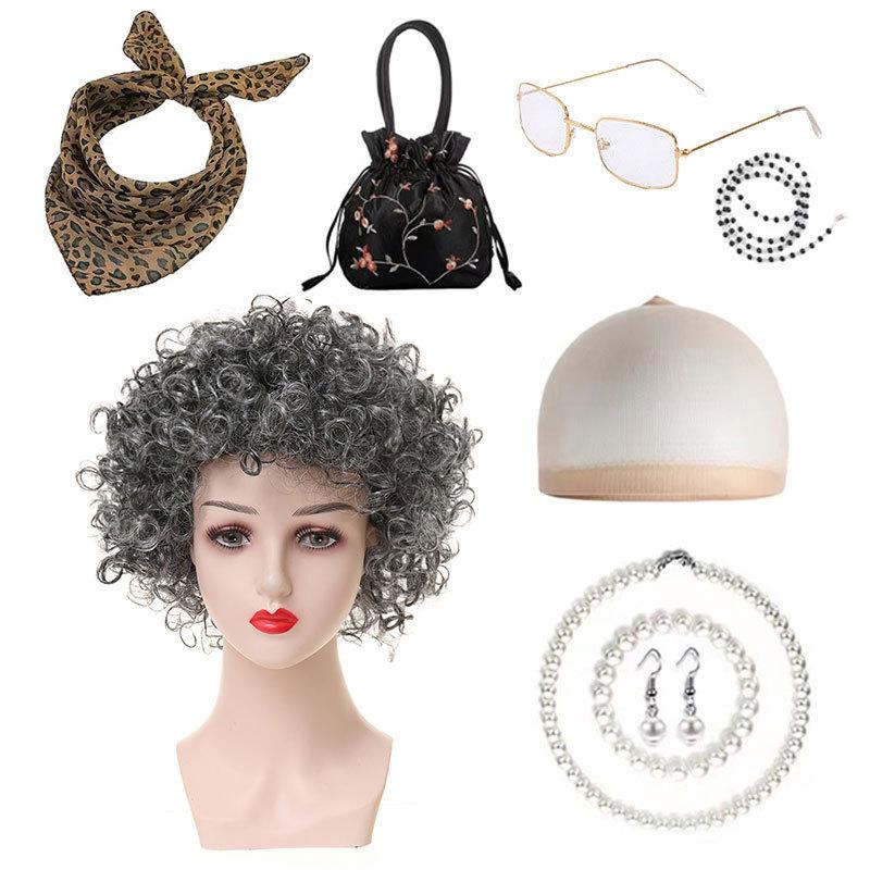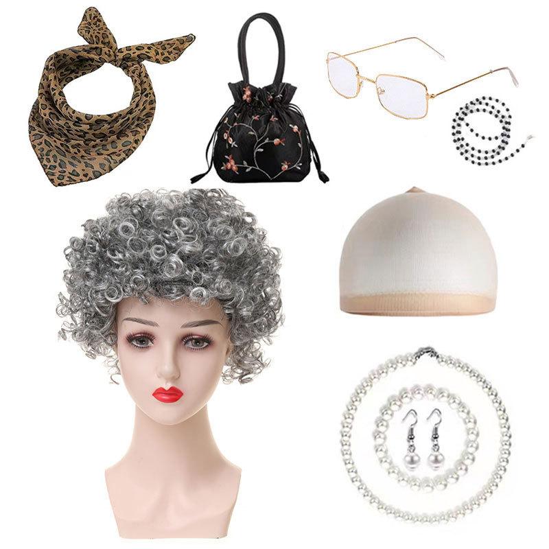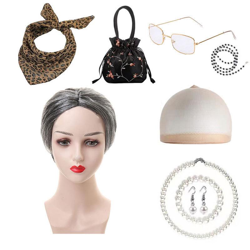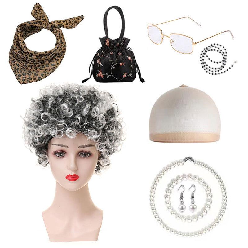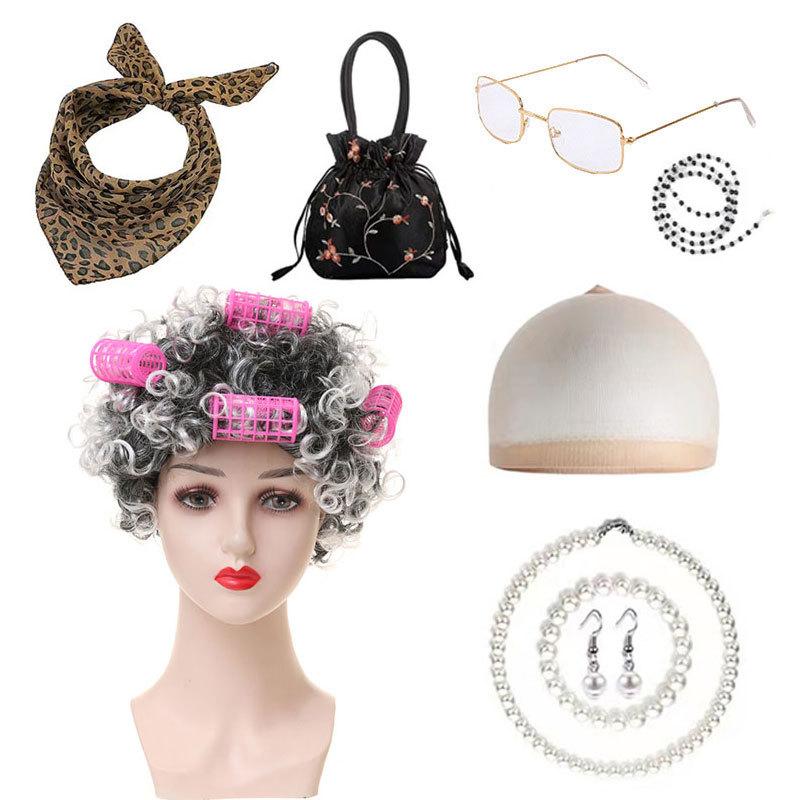 Halloween vovó peruca fantasia velha senhora peruca peruca velha senhora peruca terno peruca de festa adereços de desempenho