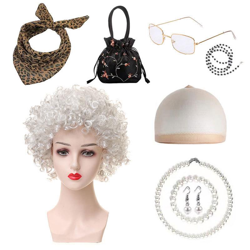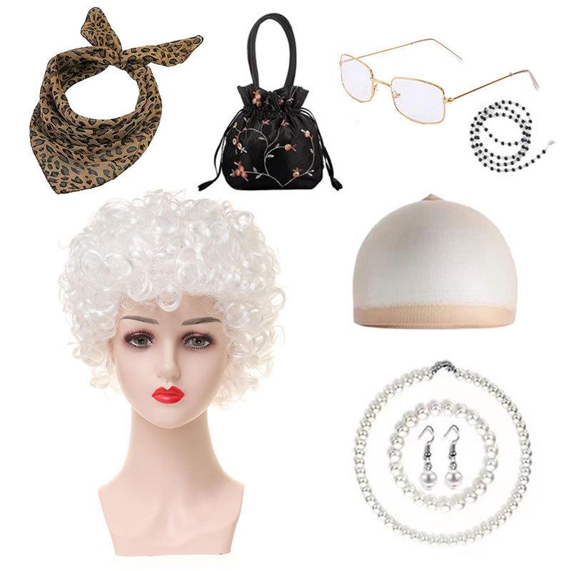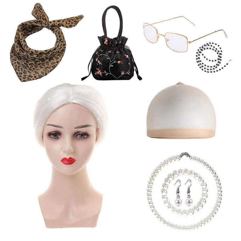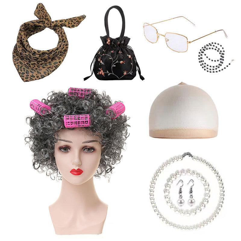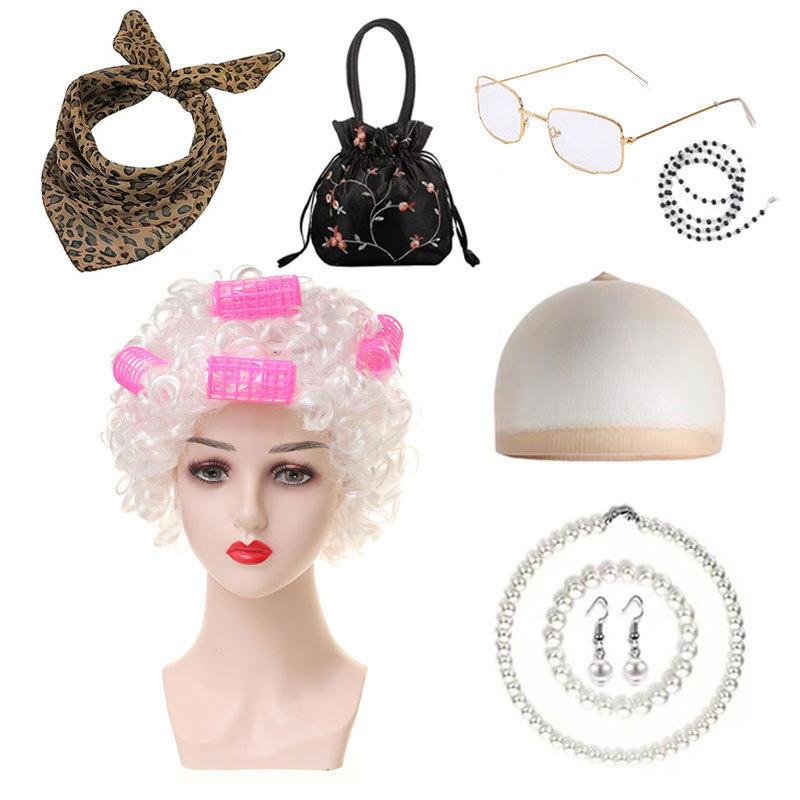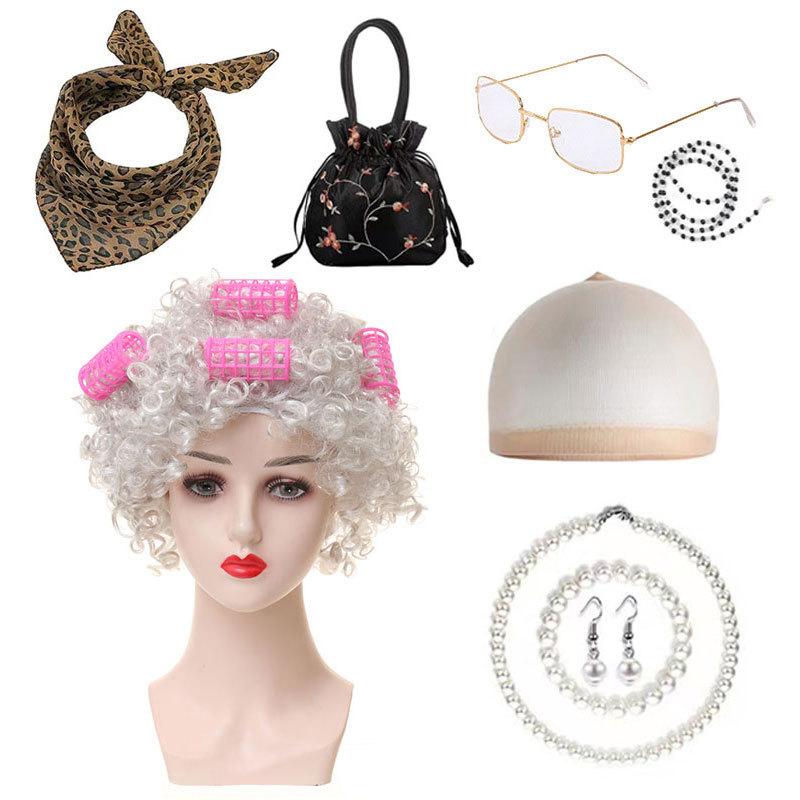 Halloween vovó peruca fantasia velha senhora peruca peruca velha senhora peruca terno peruca de festa adereços de desempenho