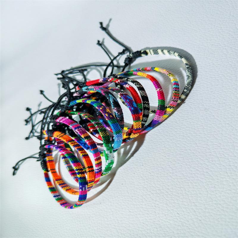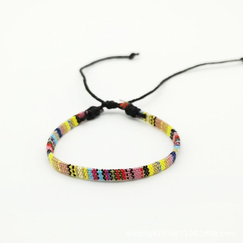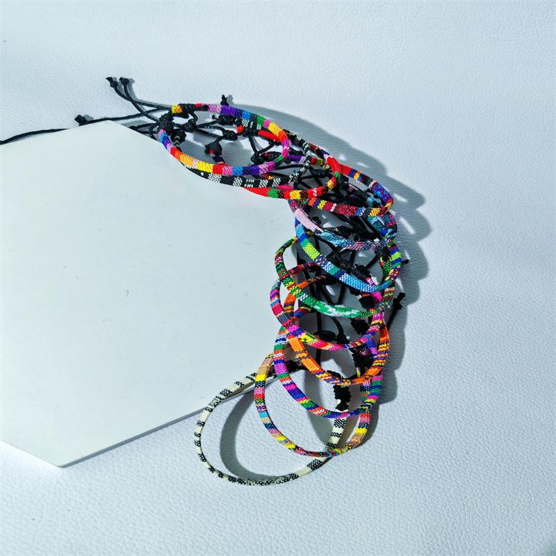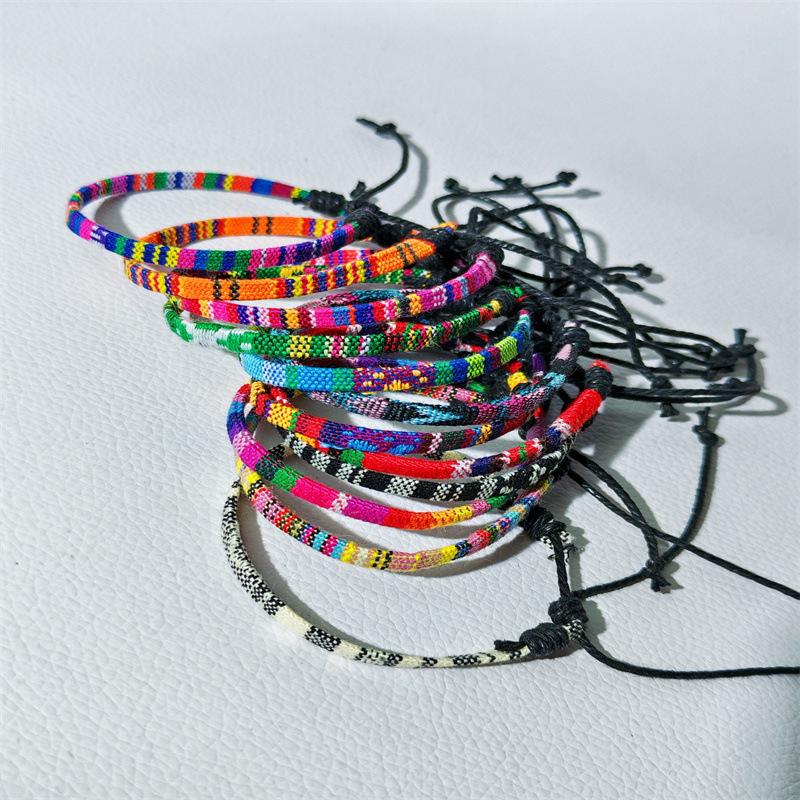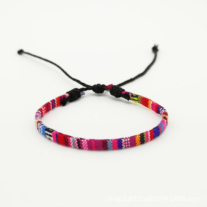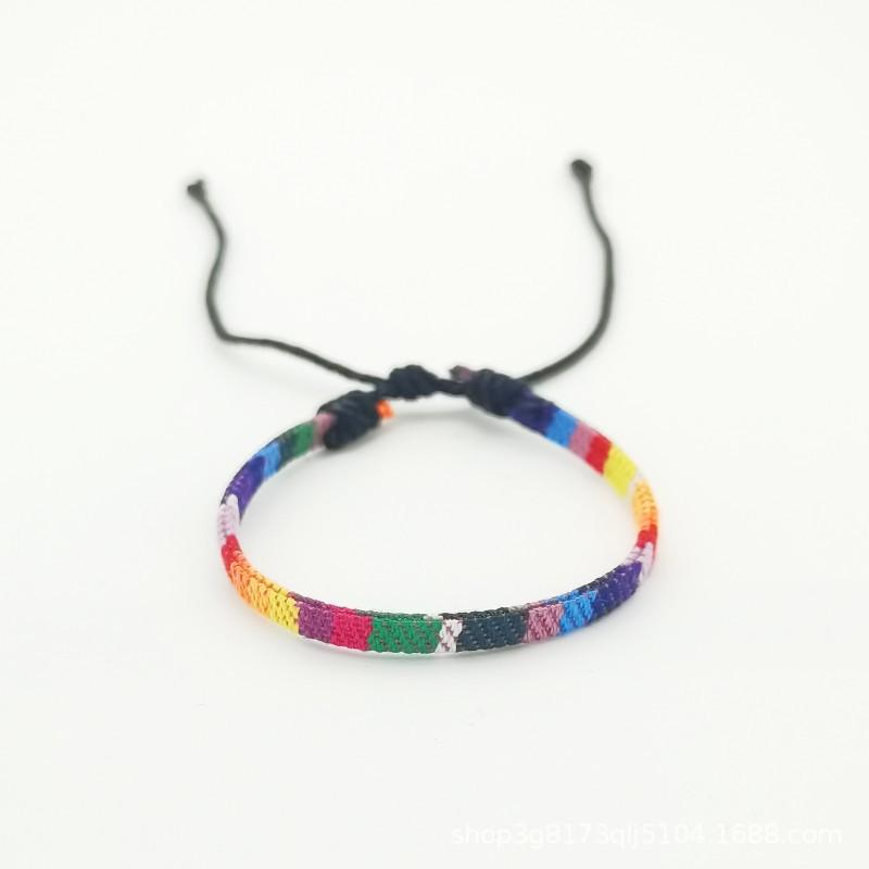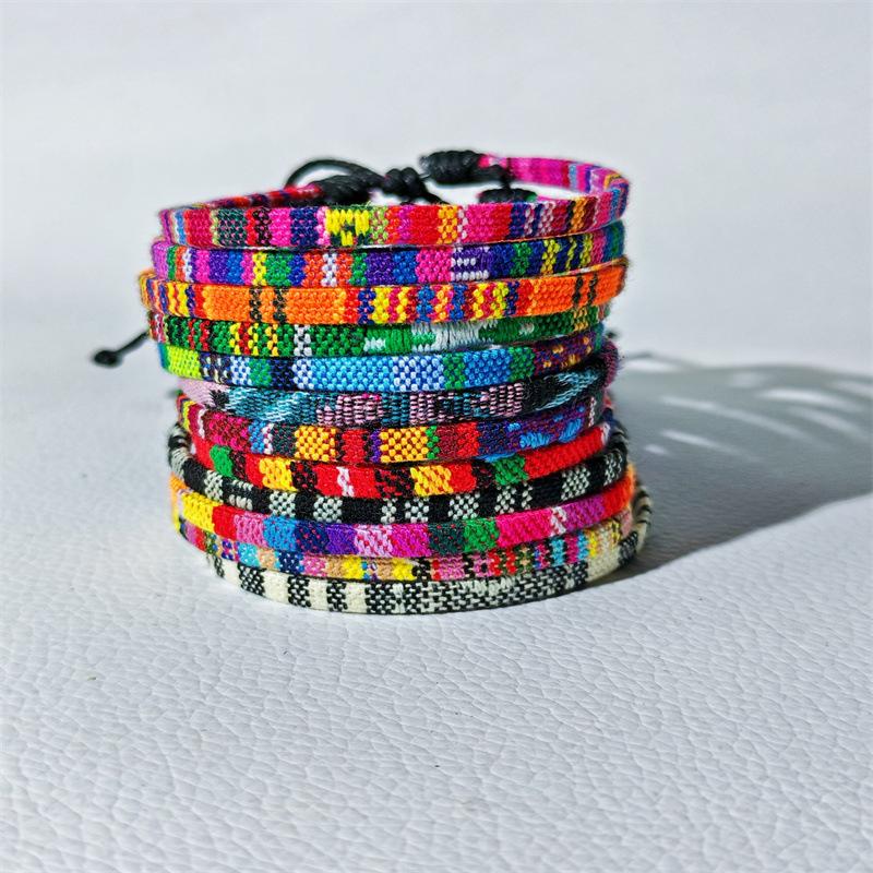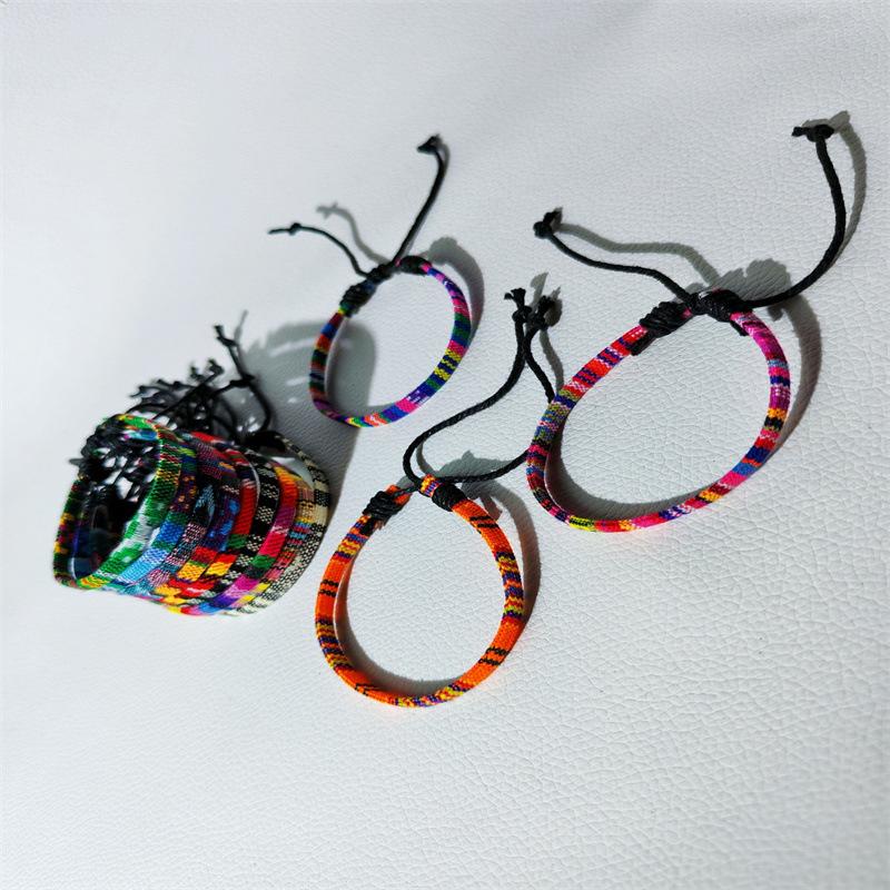 Estilo boêmio homens e mulheres Moda casal pulseira tecida estilo étnico cores do arco-íris tecida à mão encolhe mão