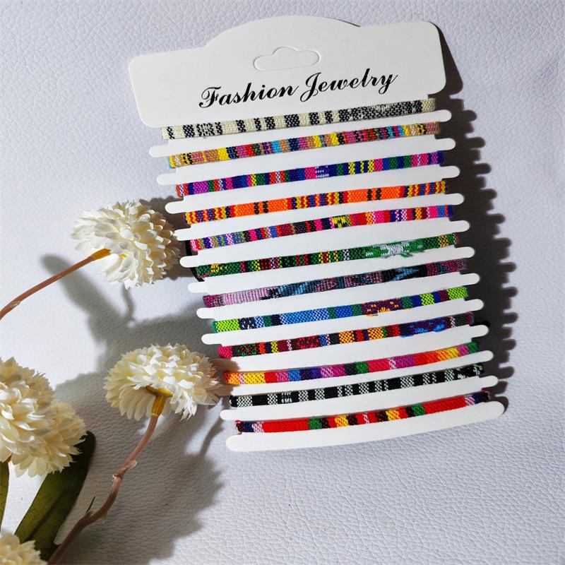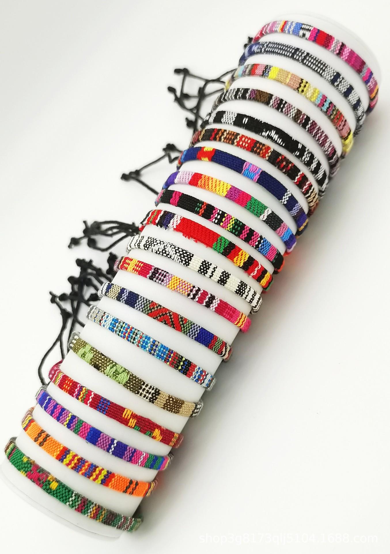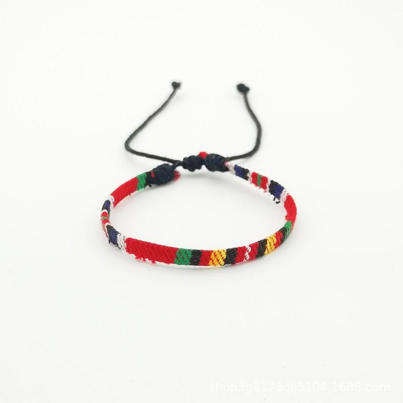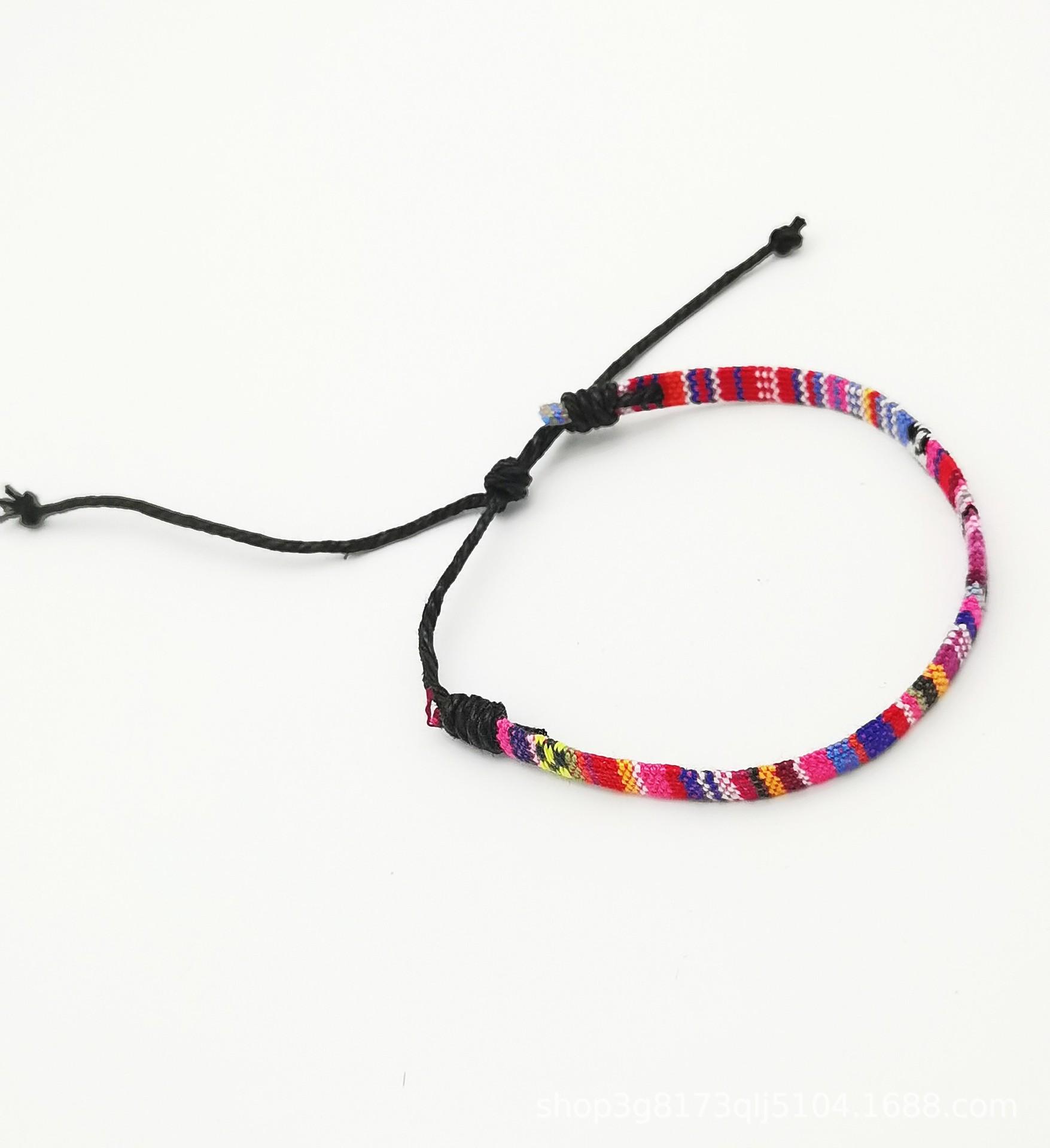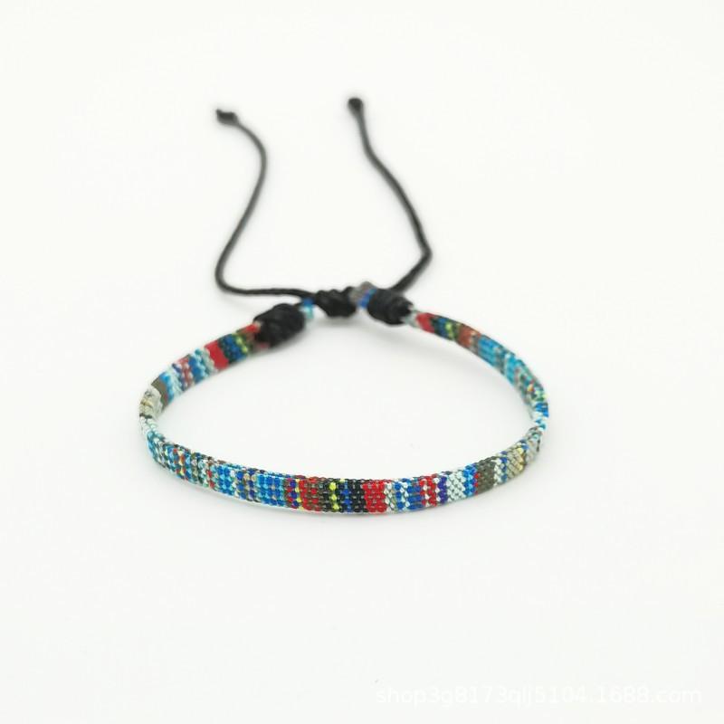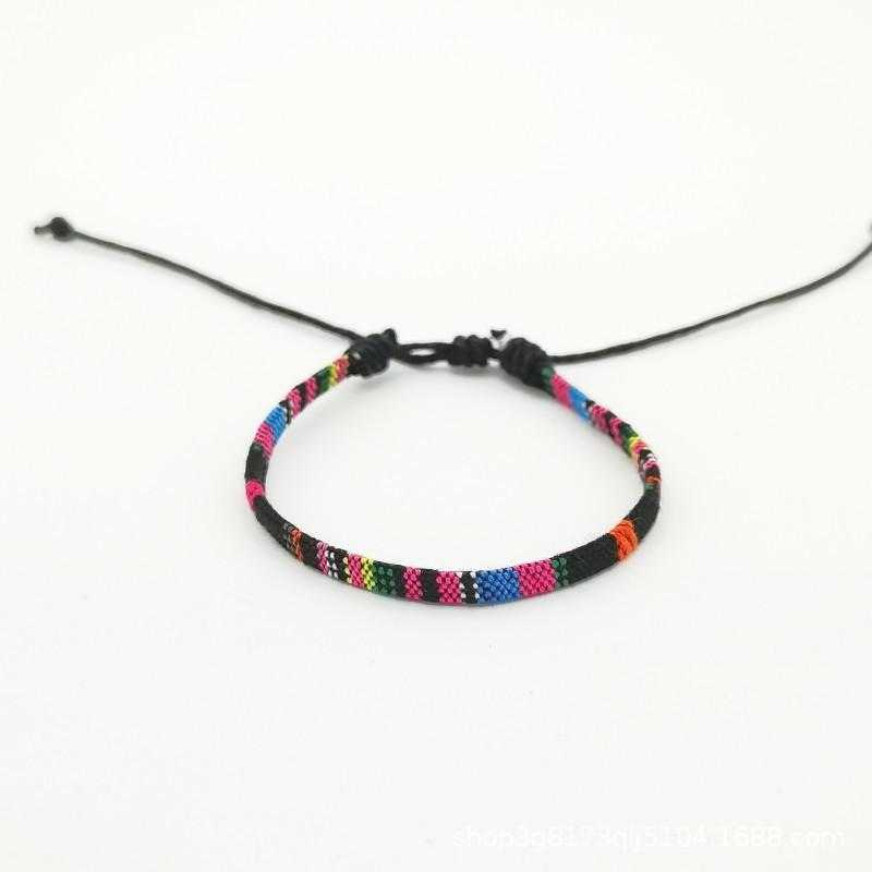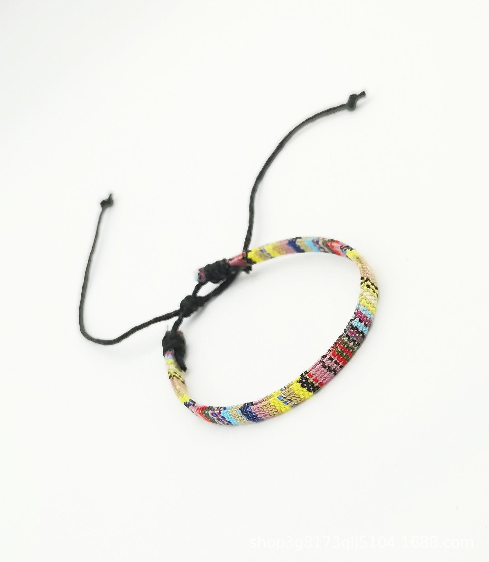 Estilo boêmio homens e mulheres Moda casal pulseira tecida estilo étnico cores do arco-íris tecida à mão encolhe mão