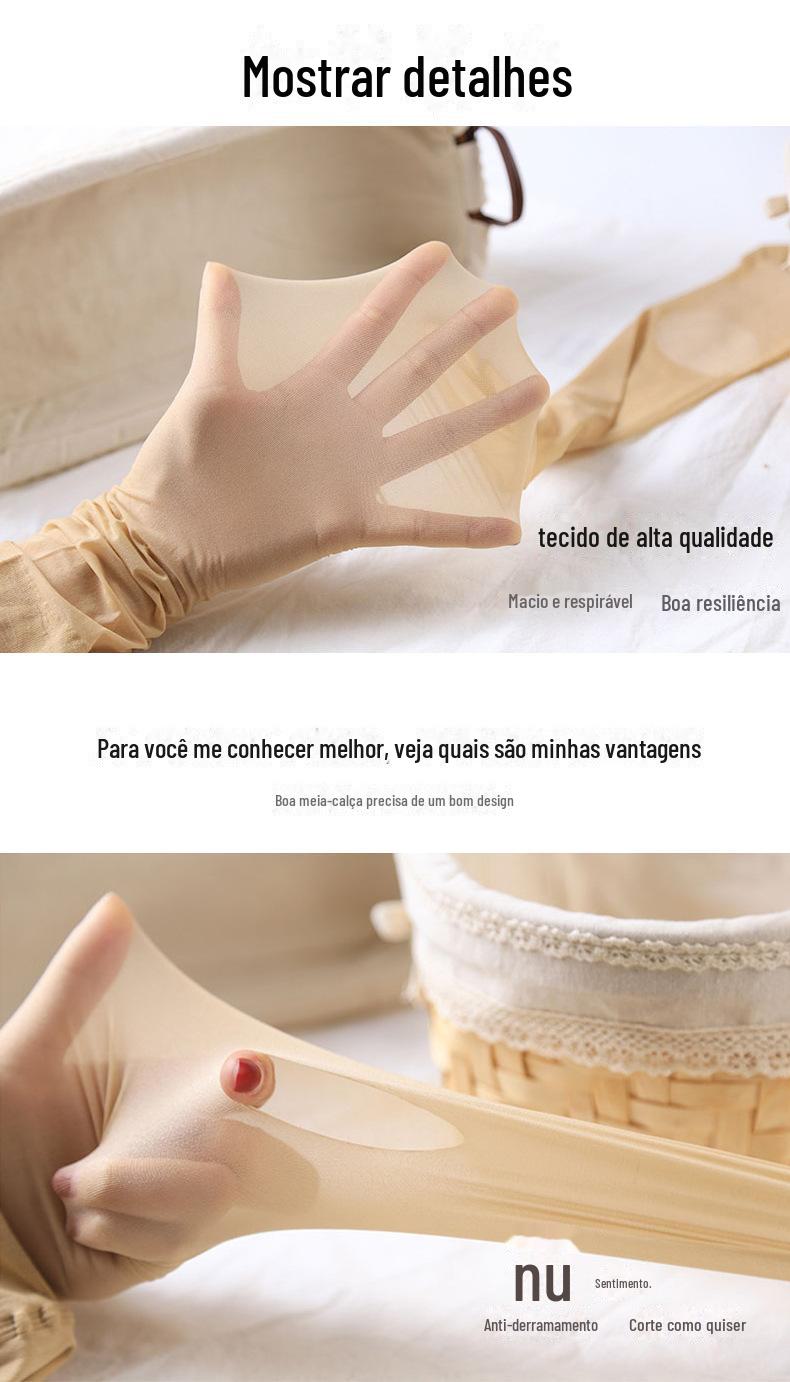Nota: Nossa fábrica fabrica meias genuínas de corte livre de quatro vias, virilha invisível e sem rastros, todas virilhas de quatro agulhas e seis fios, sem vazamento quando rasgadas. Muitos dos mais baratos no mercado são feitos de fios bidirecionais ou fiados com núcleo, que vazam quando rasgados, e a virilha tem apenas 2 agulhas e 4 fios.