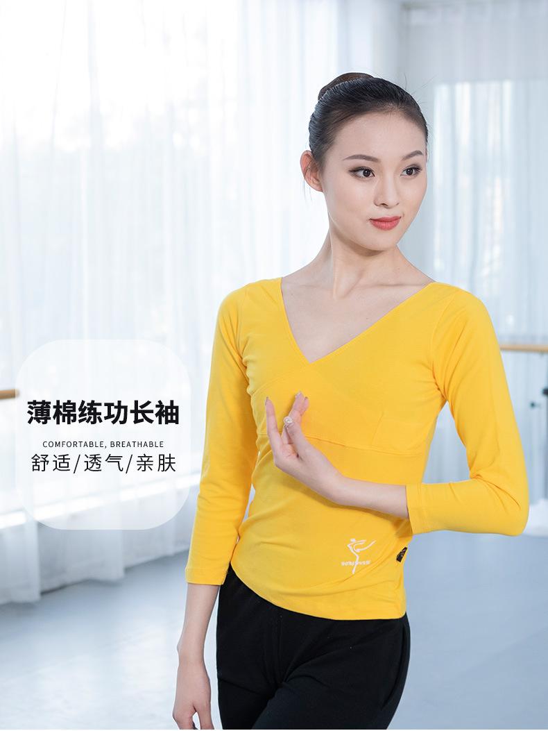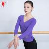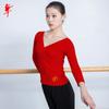 Sapatos de dança vermelhos outono algodão cruz de manga comprida prática de dança dança moderna adulto crianças mulheres roupas de balé top 38441