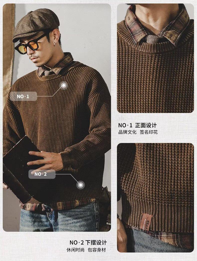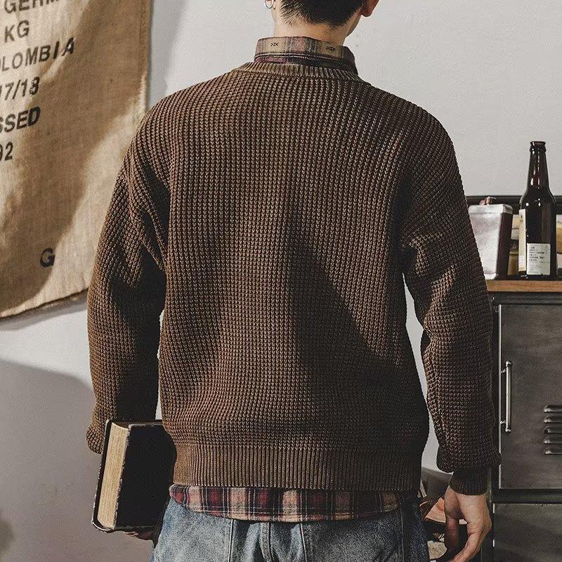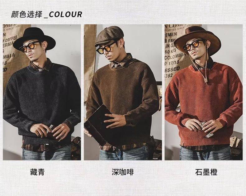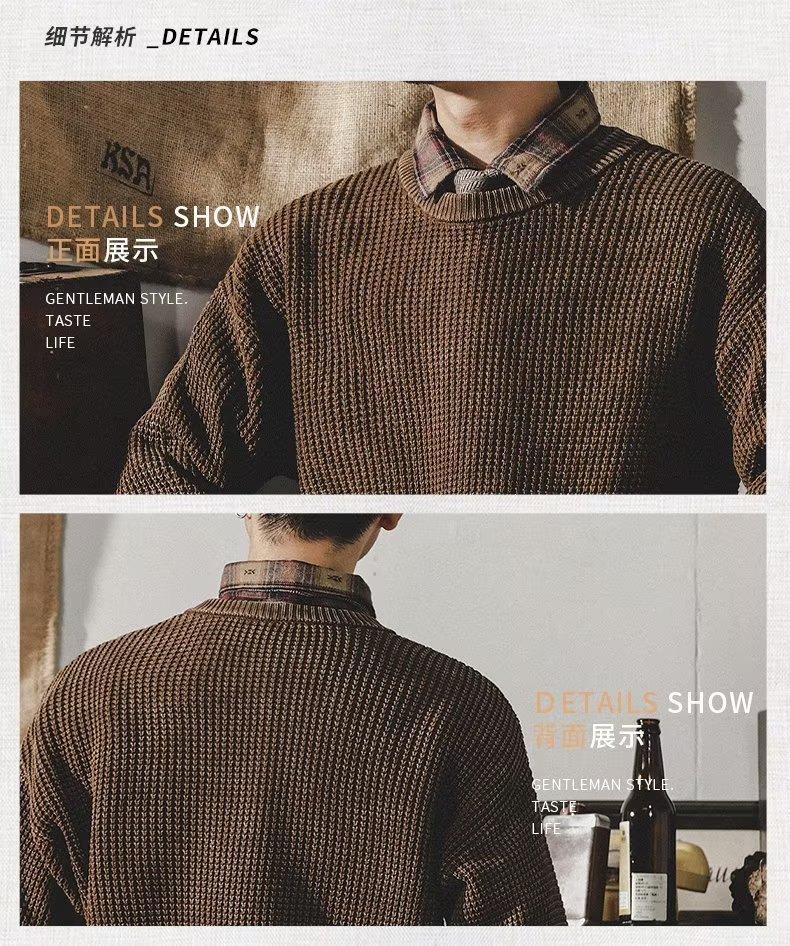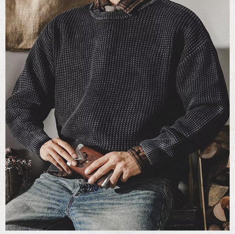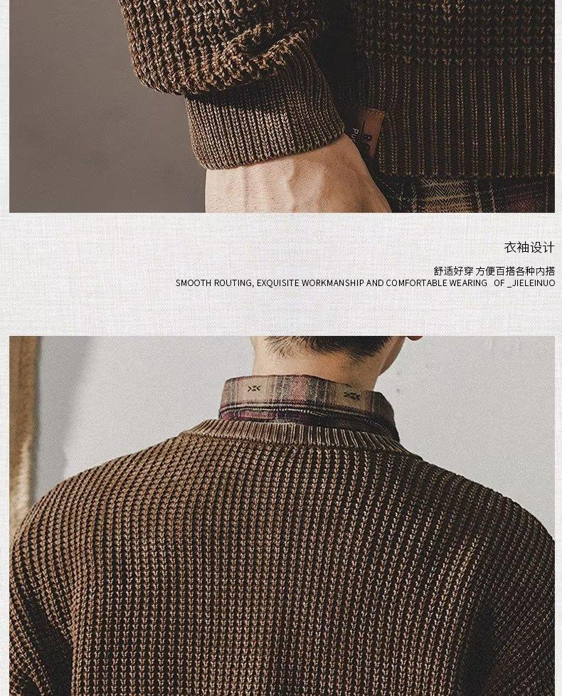 Compre Suéter vintage lavado pesado estilo americano suéter masculino inverno engrossado estilo preguiçoso simples básico outono e inverno suéter masculino no atacado no Joom.pro