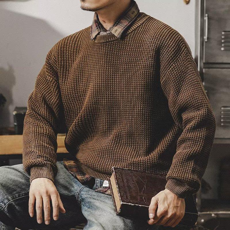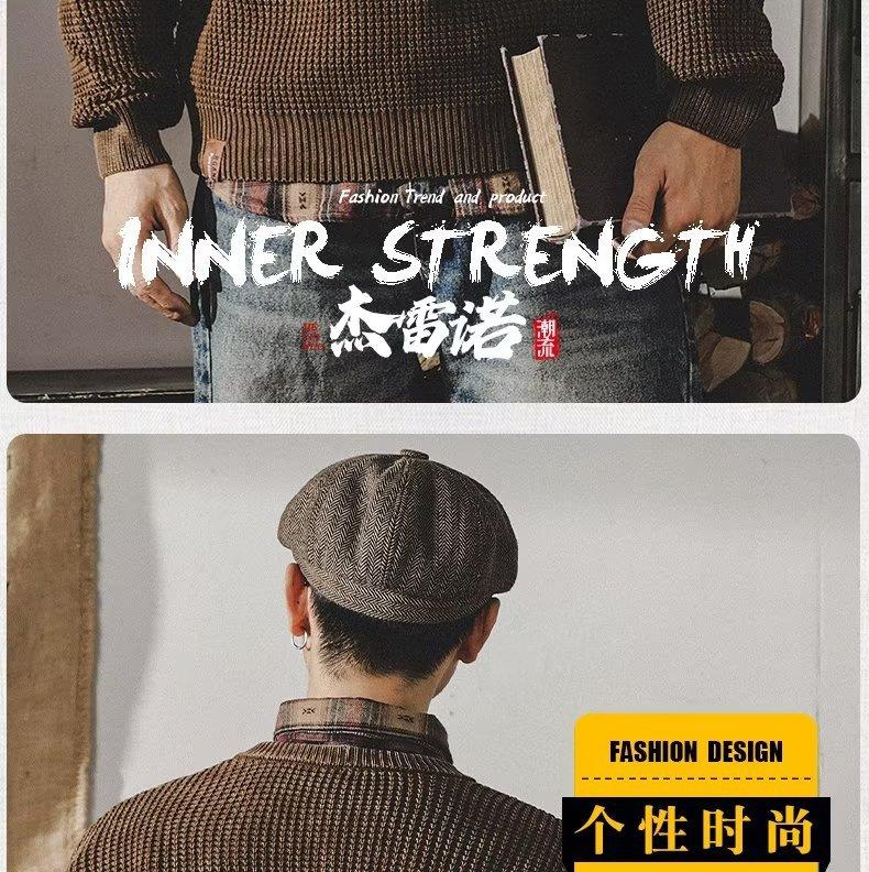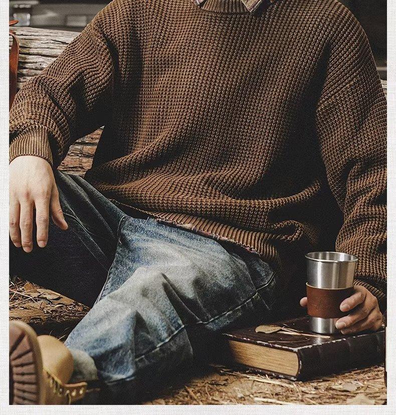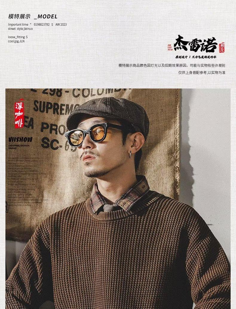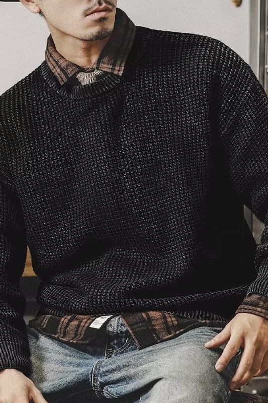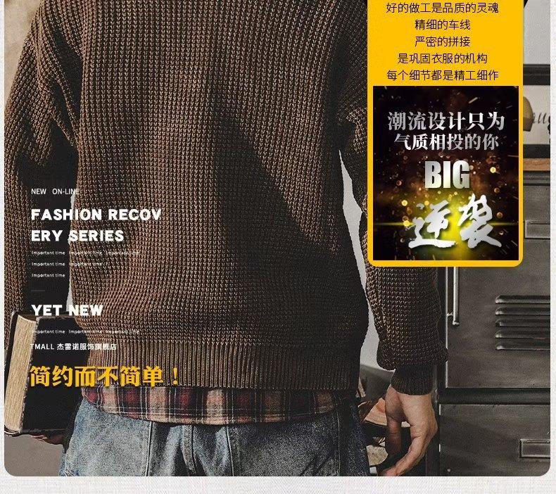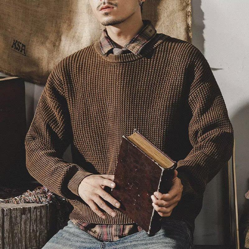 Compre Suéter vintage lavado pesado estilo americano suéter masculino inverno engrossado estilo preguiçoso simples básico outono e inverno suéter masculino no atacado no Joom.pro