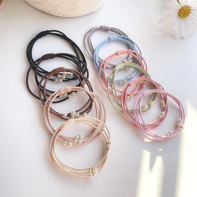 Corda de cabelo leve e luxuosa estilo coreano, alta elasticidade, anel de cabelo com strass, contas de cor, faixa de borracha, corda de cabelo simples, acessórios de cabelo, atacado