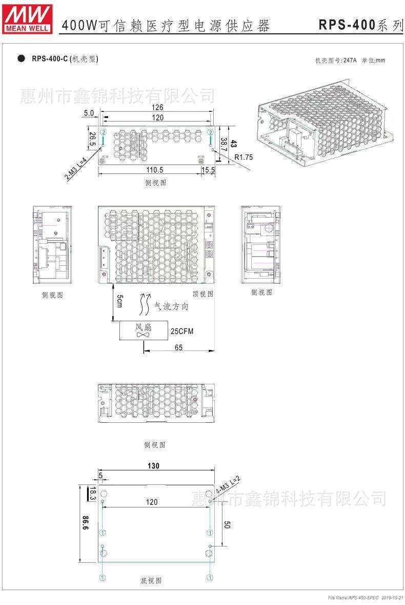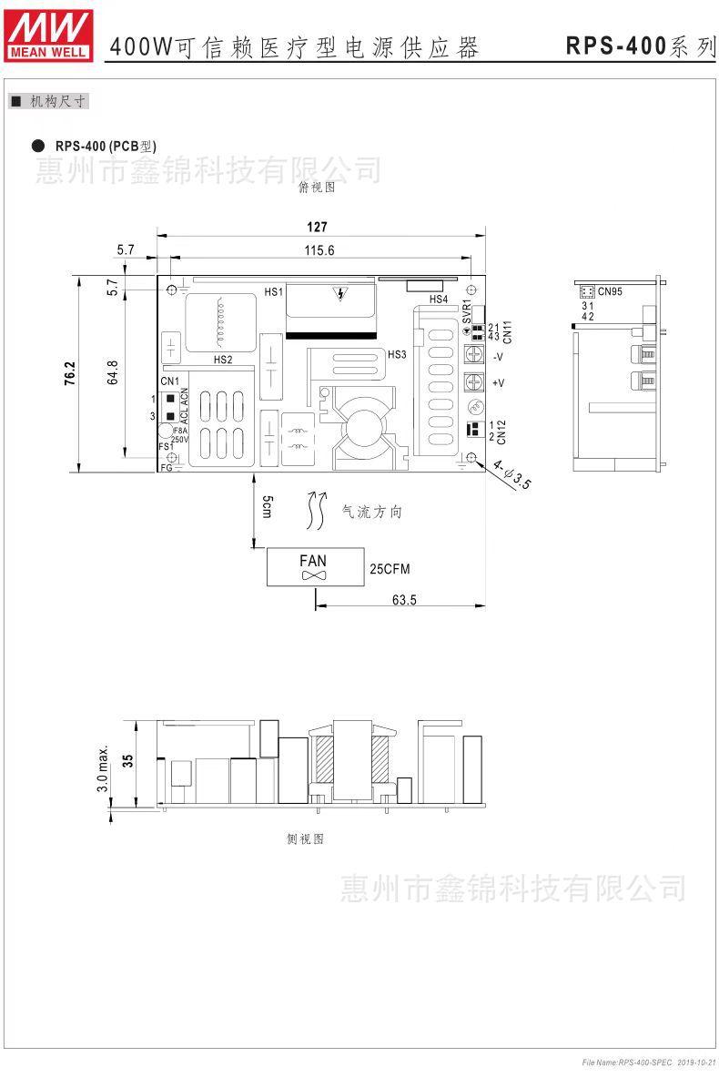 Fonte de Alimentação Rps-400-12Tf/Sf Taiwan Mean Well com Gabinete Verde Tipo Médico Fonte de Alimentação Chaveada