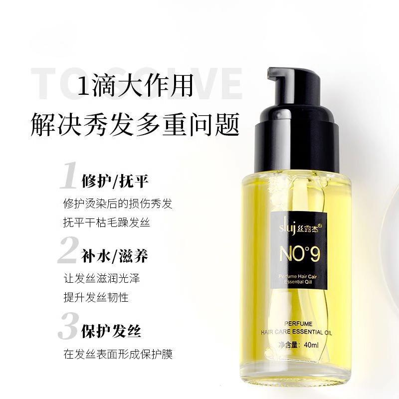 Silujie perfume cuidados com o cabelo óleo essencial 9% grau Care Essence Hair Wash-free condicionador de cabelo anti-frizz óleo de cabelo macio
