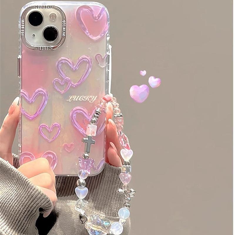 Adequado para iPhone15 shell telefone móvel Apple 14promax Laser Love 13/12 corda portátil 11 fêmea 15pro coreano