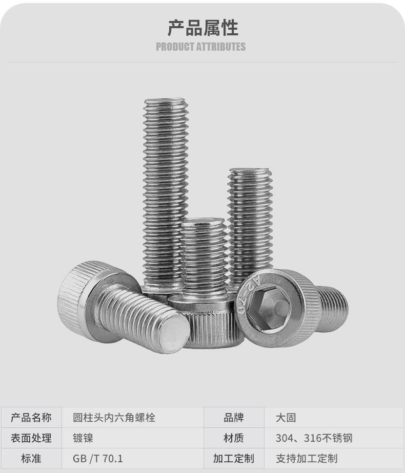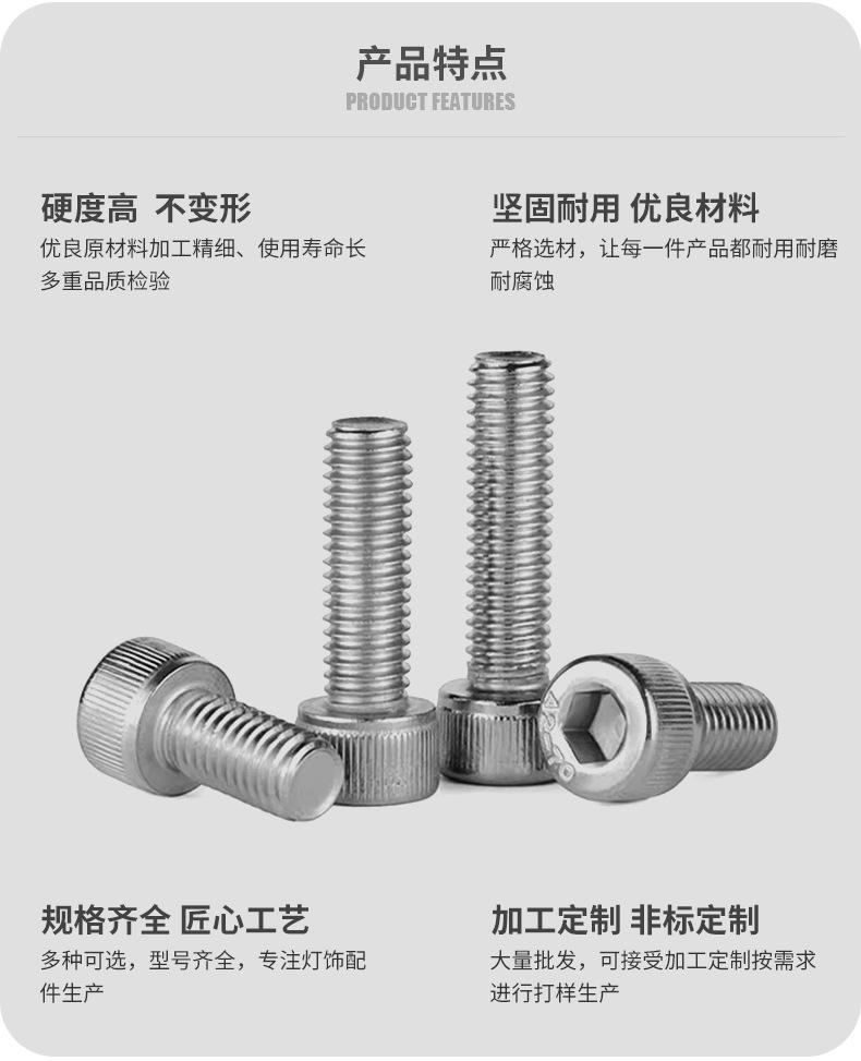 Parafusos de Soquete Sextavado Cabeça Cilíndrica Parafusos de Soquete Sextavado Aço Inoxidável 304 Aço Inoxidável 316 Parafusos Cabeça Cônica M3M4M5