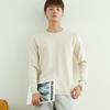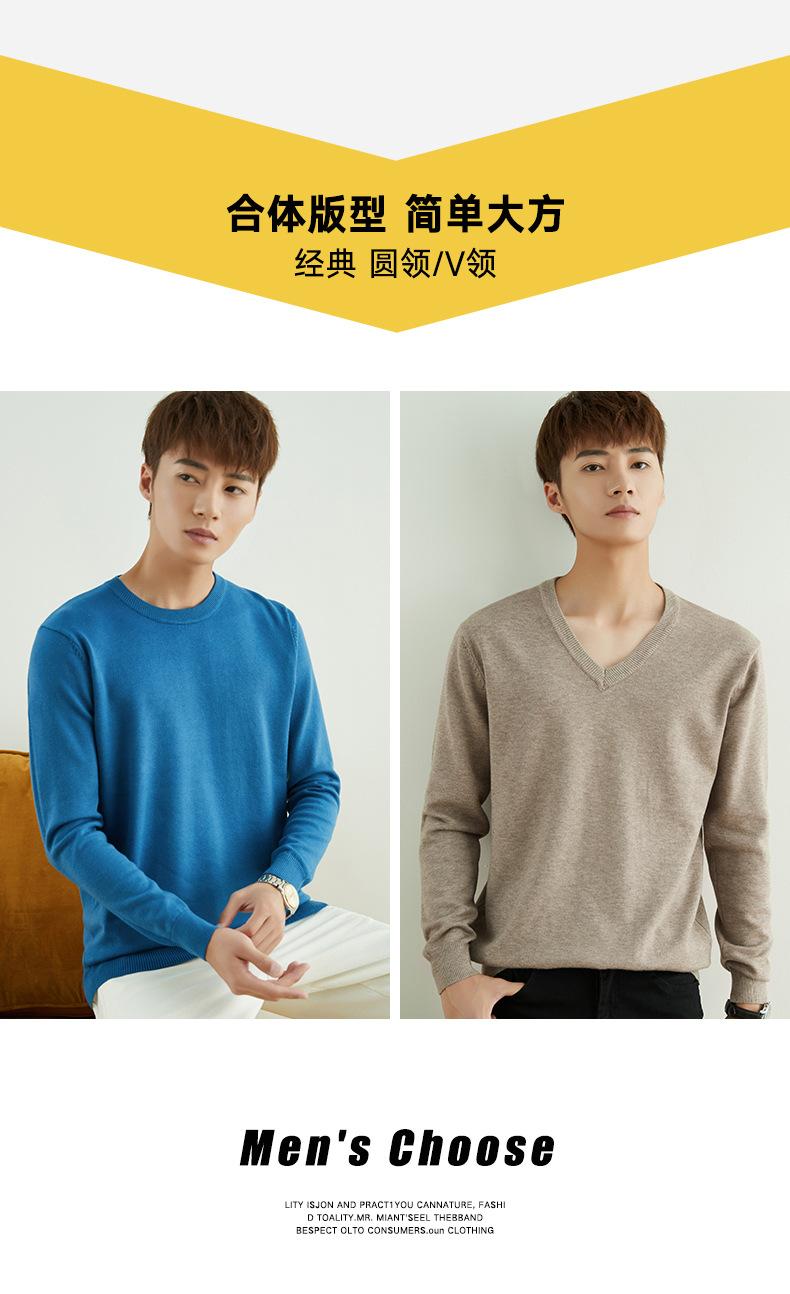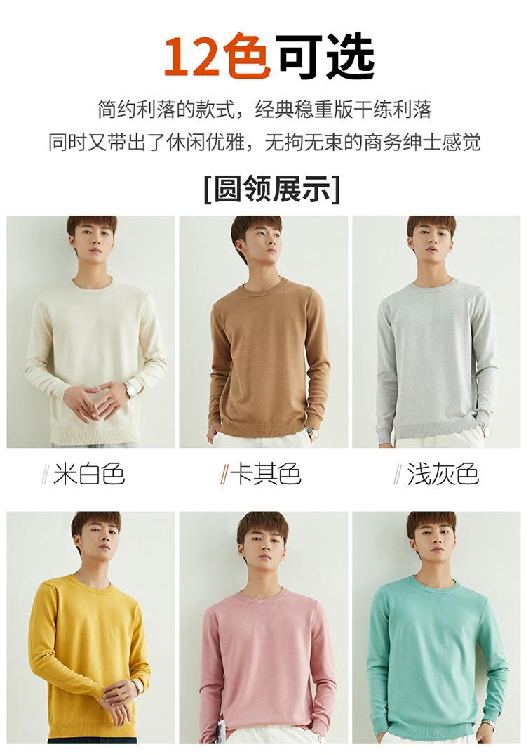 Suéter masculino de gola redonda, estilo coreano, slim fit, cor sólida, manga comprida, suéter de malha, pulôver grosso, camisa de base, suéter masculino moderno