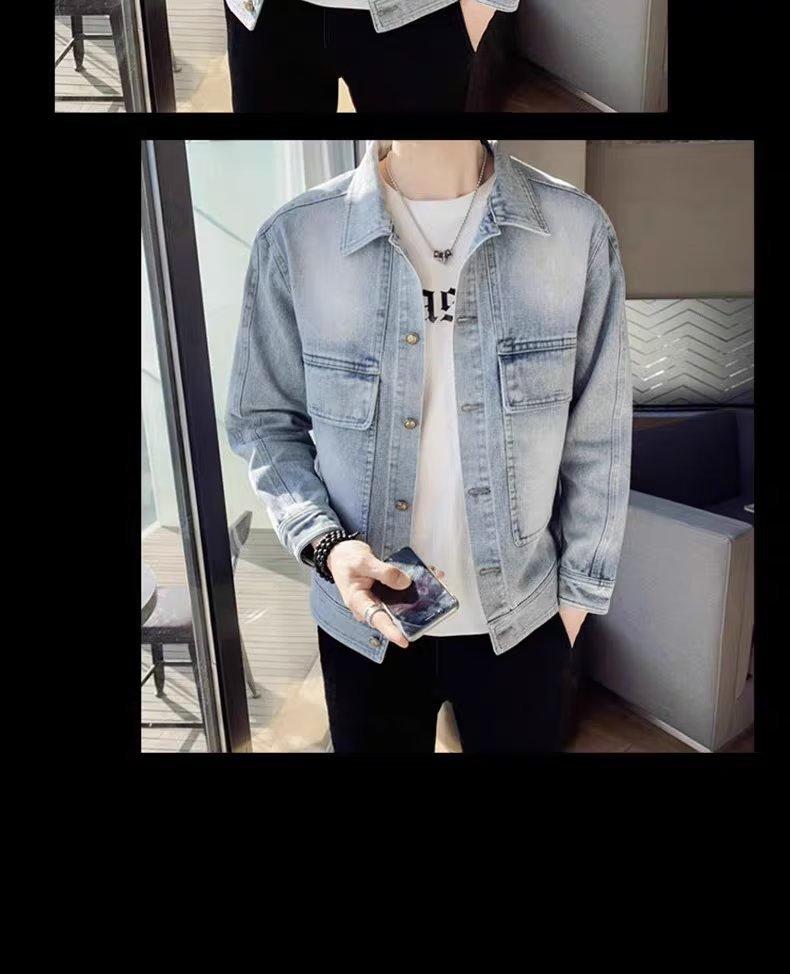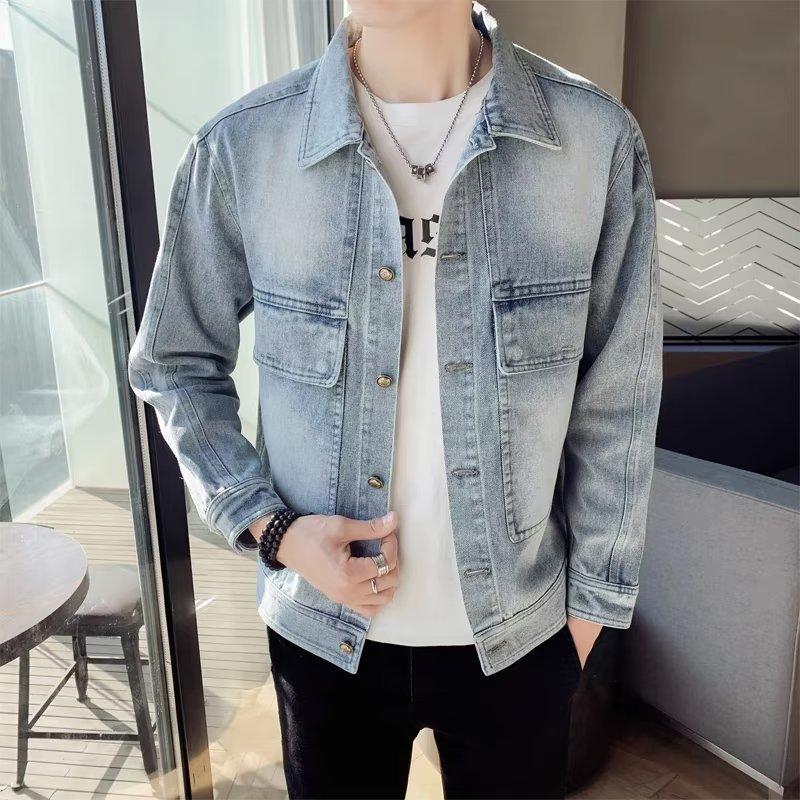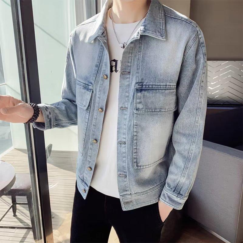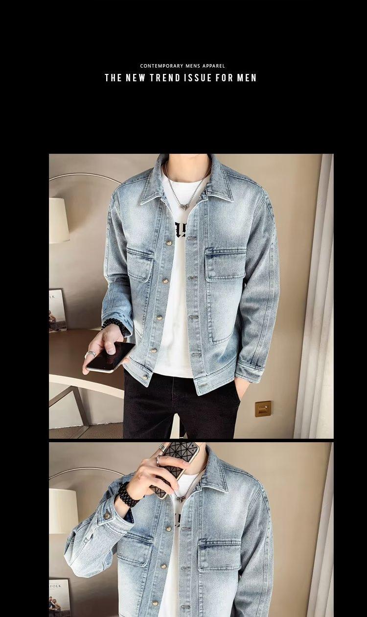 Jaqueta jeans primavera e outono masculina estilo coreano marca de moda bonito solto bonito vestido de trabalho casual all-match jaqueta de bolso grande