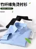 Camisa masculina da juventude nova fibra de bambu negócios homens camisa de manga comprida não-ferro camisa vestido