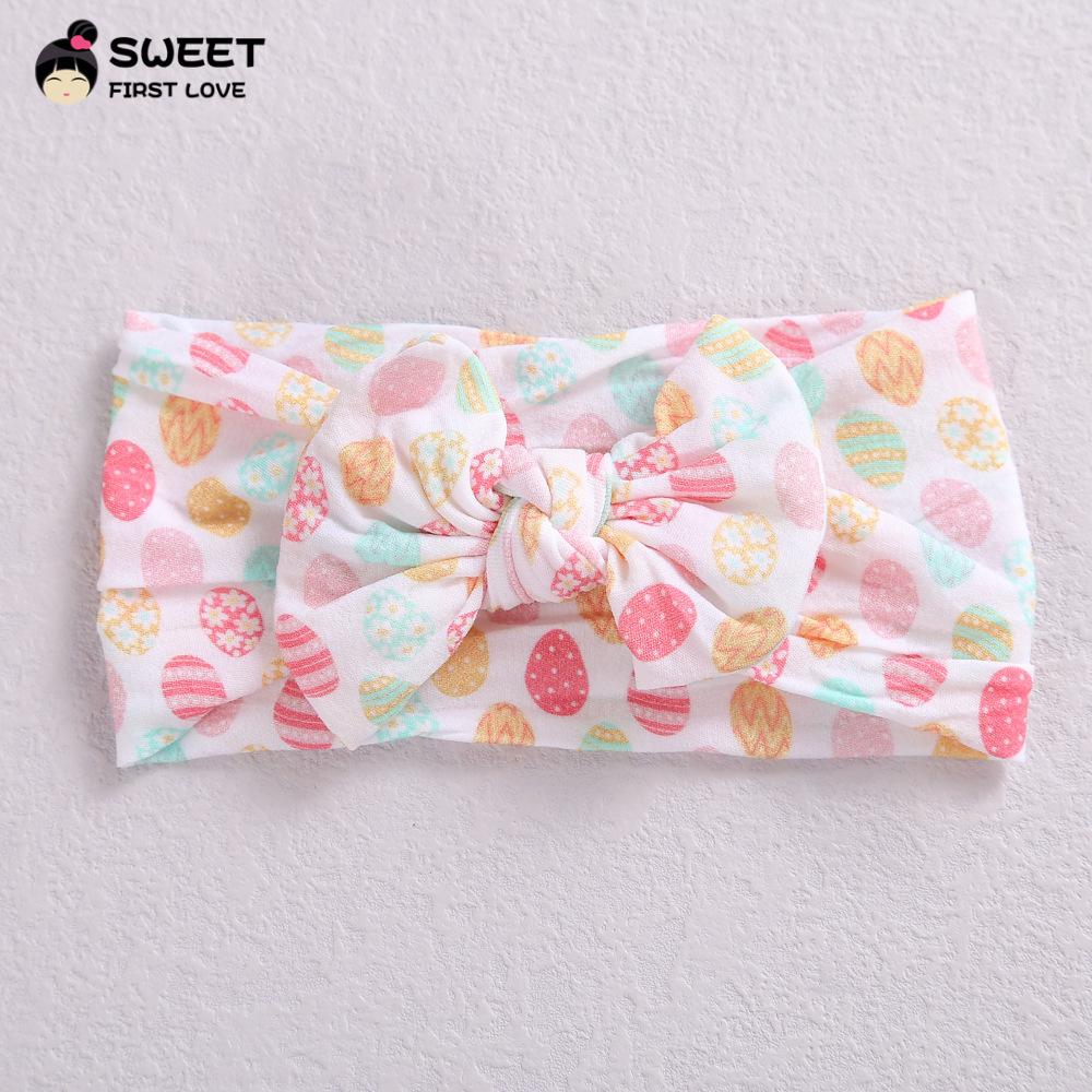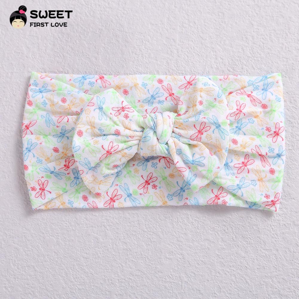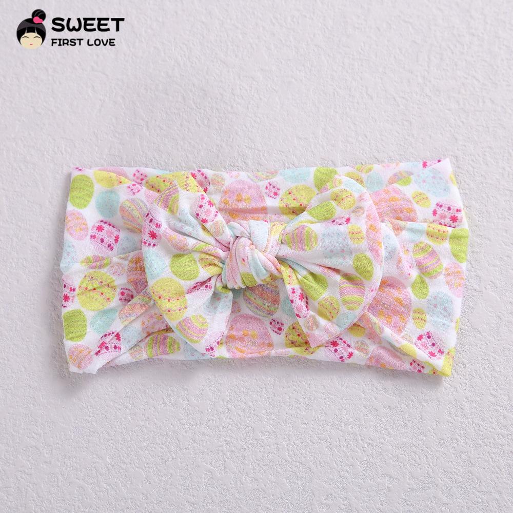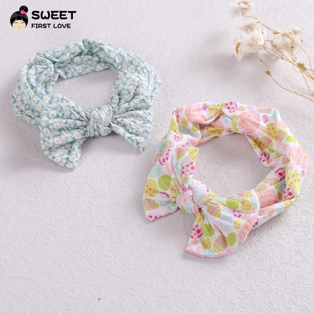Novos acessórios de cabelo infantis transfronteiriços, laço interno de nylon elástico macio, faixa de cabelo com impressão digital para bebê