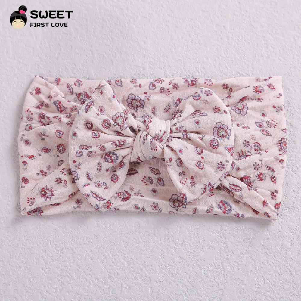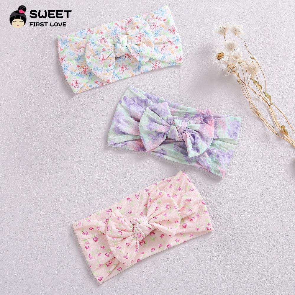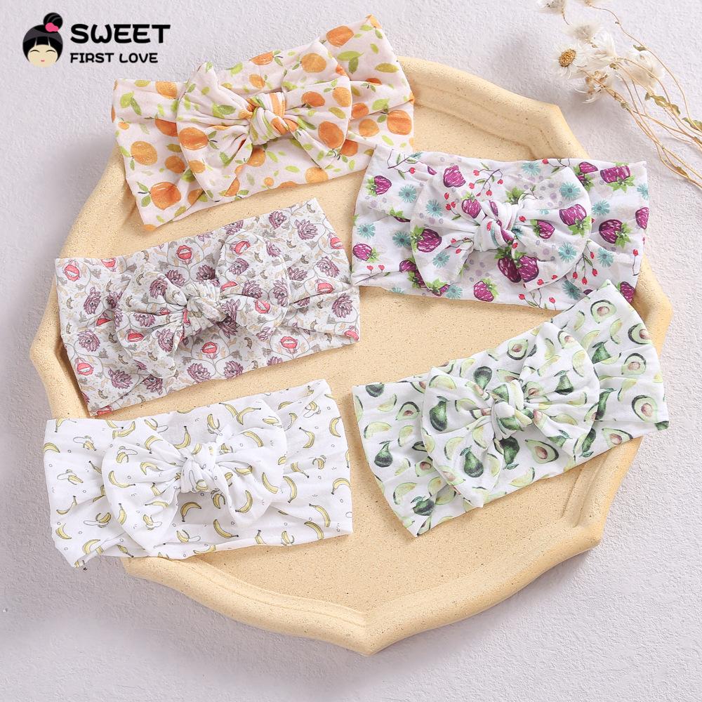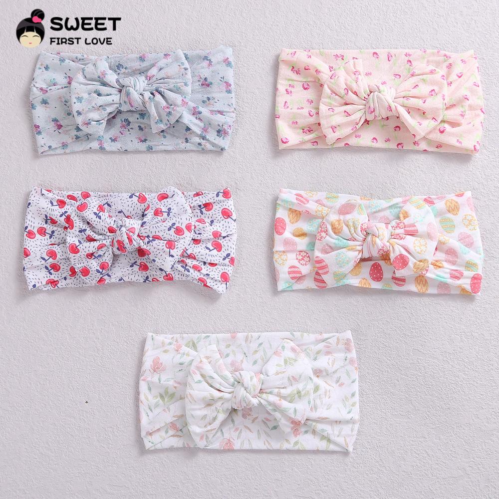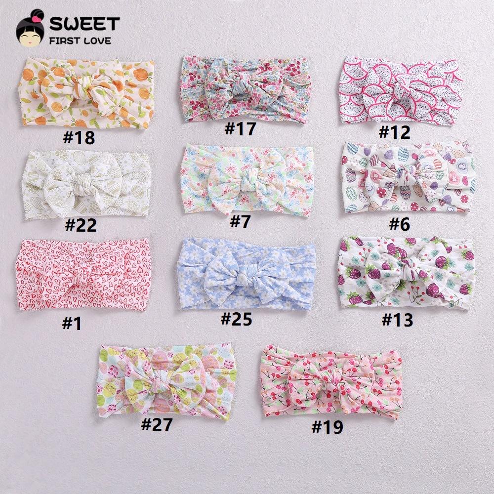 Novos acessórios de cabelo infantis transfronteiriços, laço interno de nylon elástico macio, faixa de cabelo com impressão digital para bebê