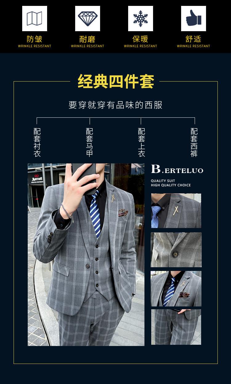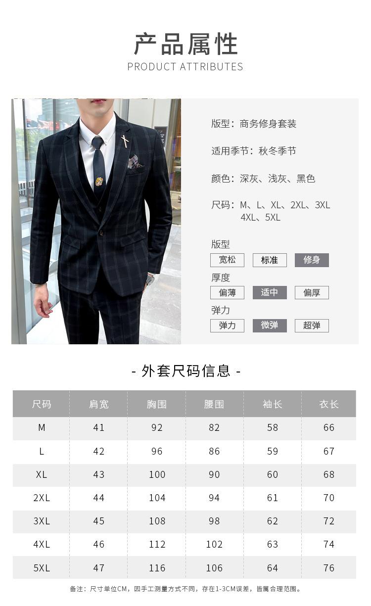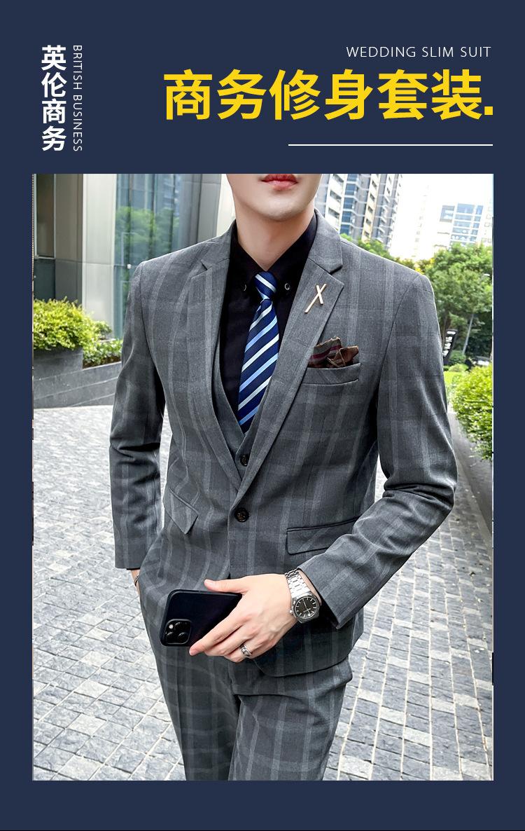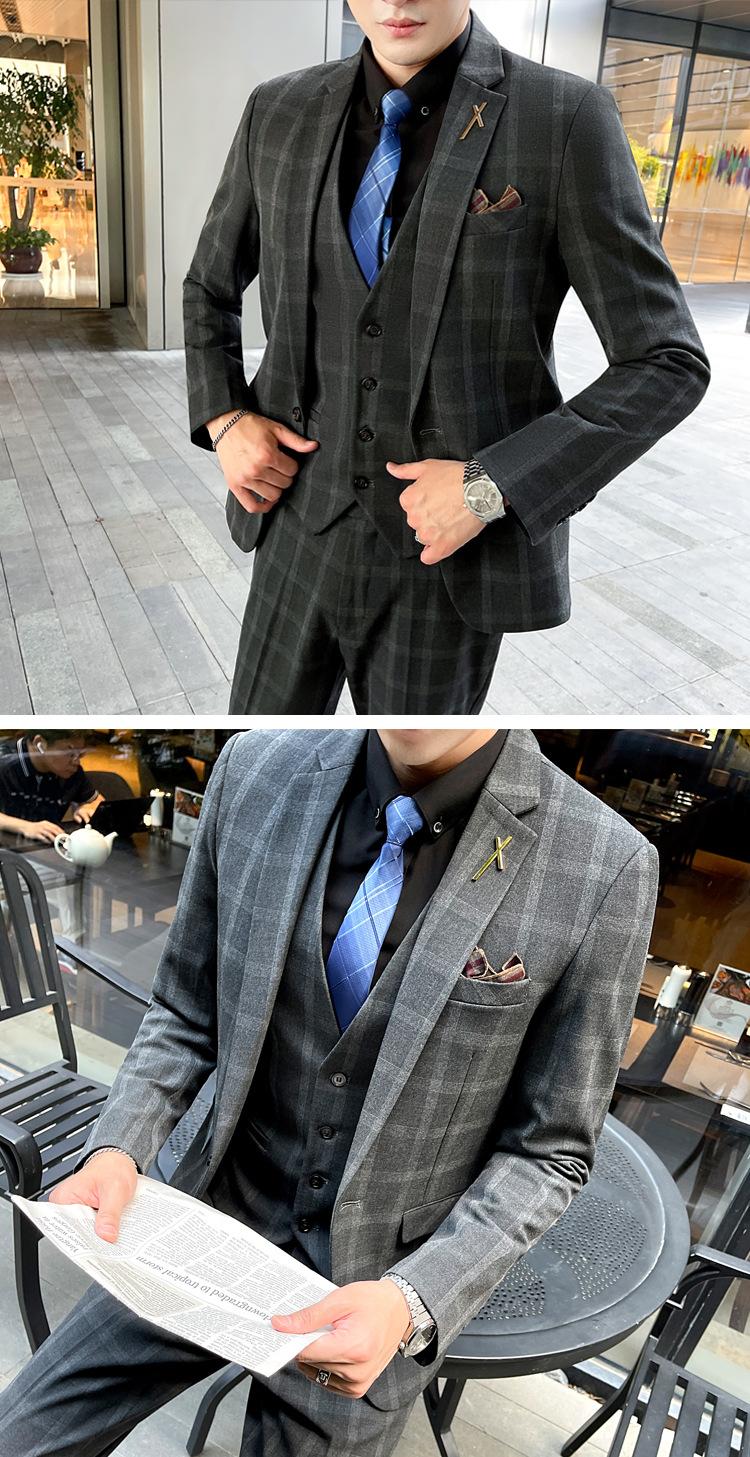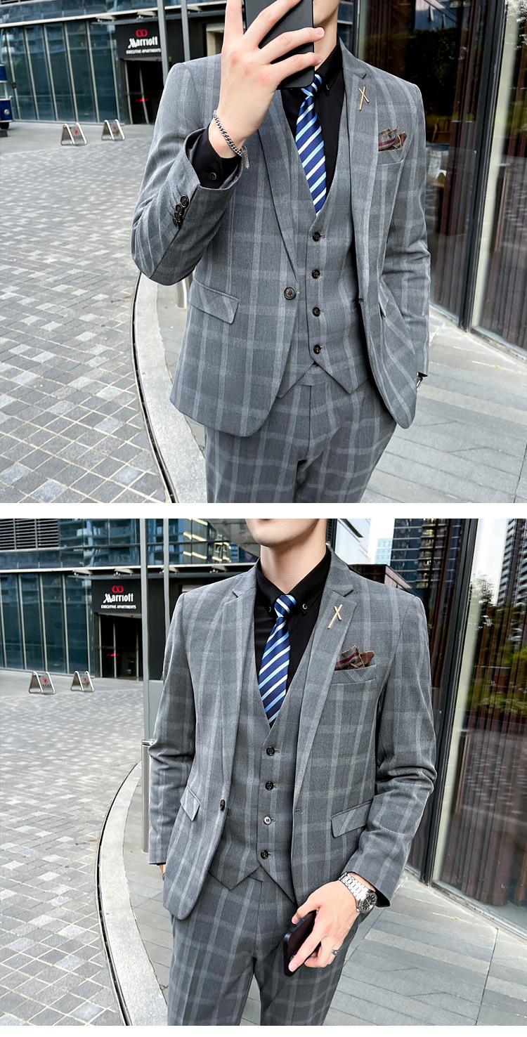 Terno Casual Coreano Coreano Primavera e Outono Masculino Terno Profissional de Três Peças Terno Masculino Terno Xadrez Masculino Terno Masculino