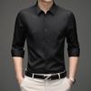 Verão fino homens camisa de alta qualidade gelo seda vestir negócios casual vestir puro branco preto polegadas roupas não-ferro slim fit