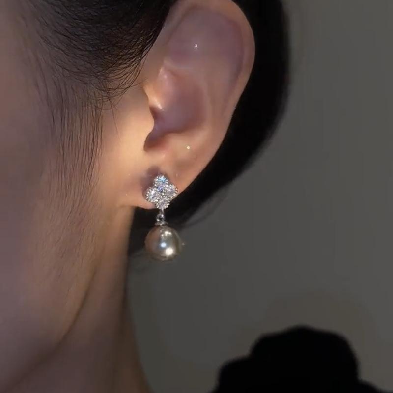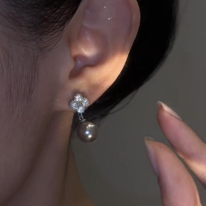 Compre Requintado pequeno flor cinza brincos de pérola leve luxo moda high-end all-match brincos estilo francês brincos frescos no atacado no Joom.pro