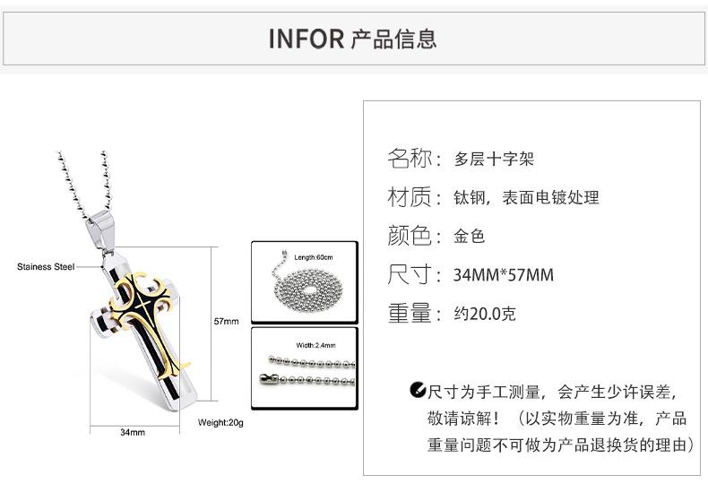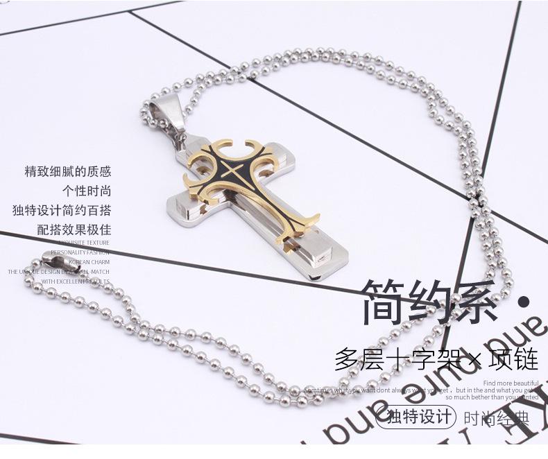Comércio Exterior Aço Inoxidável Joias Vintage Moda Multi-camada Cruz Titânio Aço Colar Ouro Personalidade Pingente Moderno Masculino