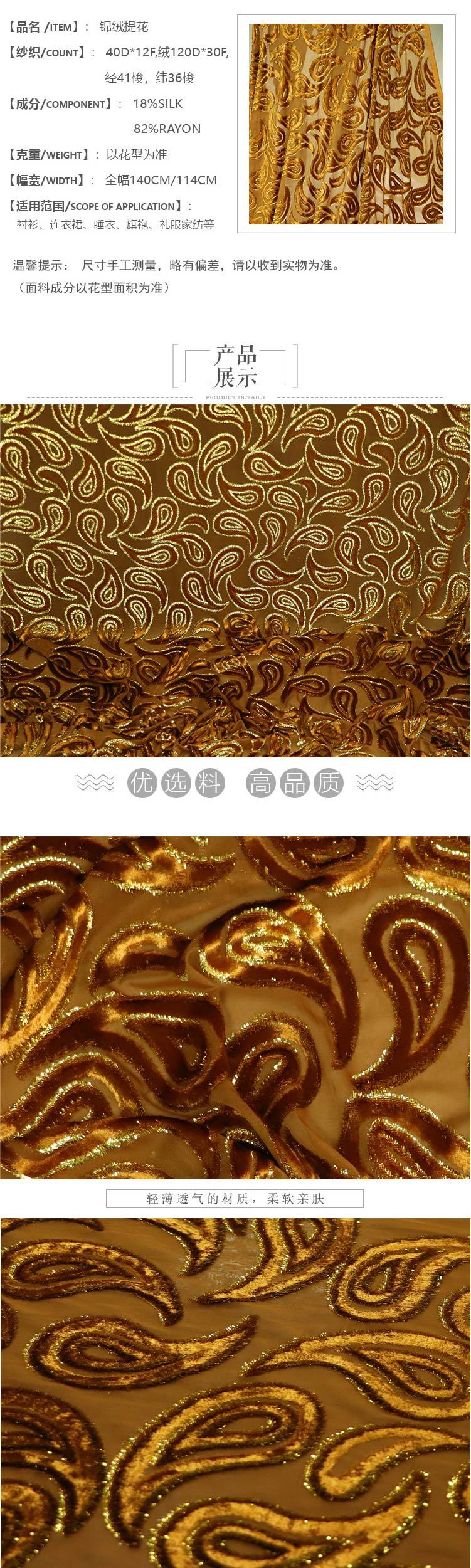Atacado de fábrica tecido de veludo jacquard de seda de veludo tecido vestido de alta costura vestido cheongsam casamento