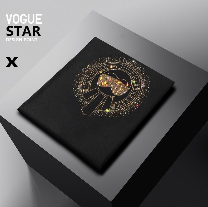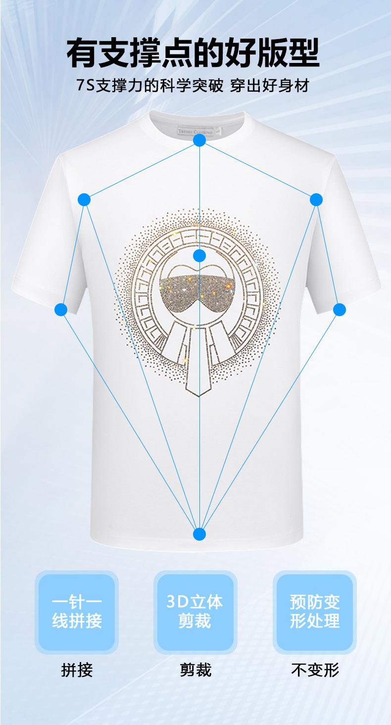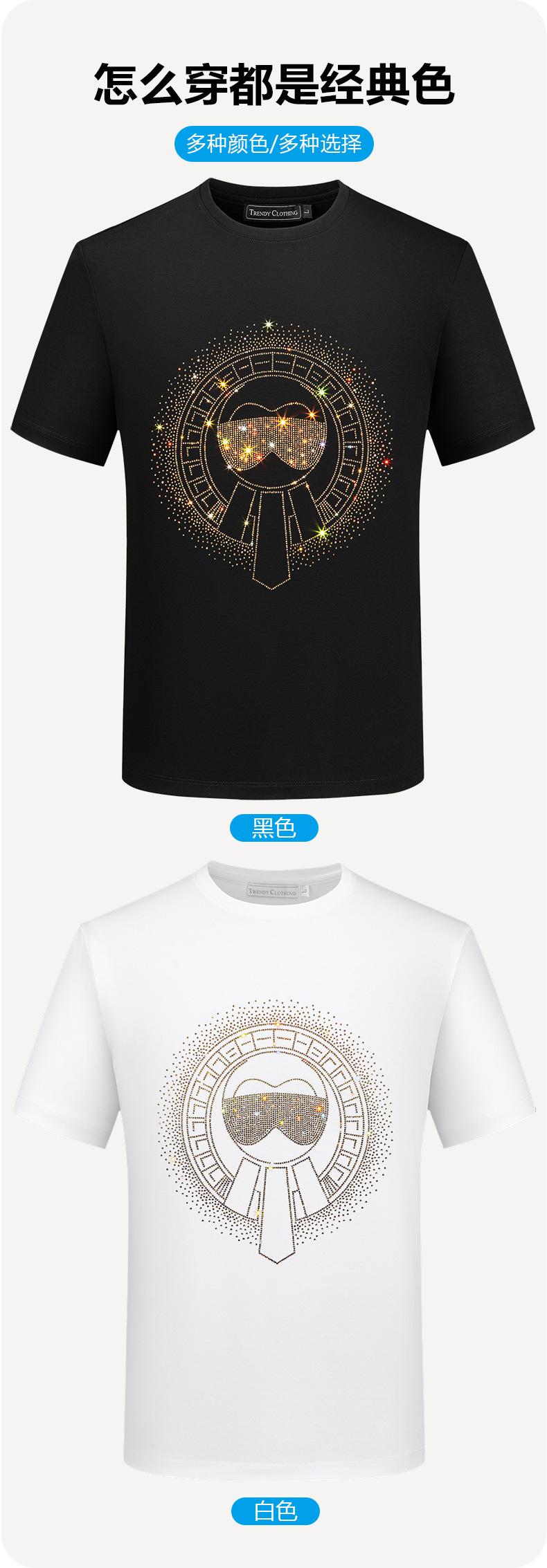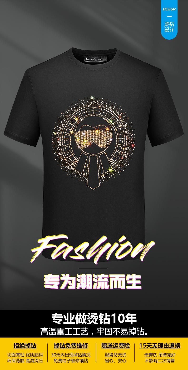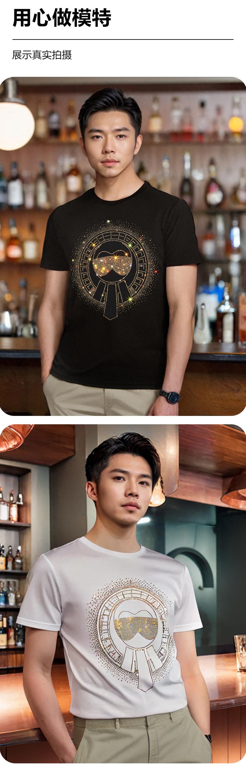 2025 Nova Camiseta de Manga Curta com Diamantes Quentes Europeia e Americana Masculina Trendyy Tamanho Grande Masculina Casual Manga Média Masculina Trendyy Camiseta de Algodão Mercerizado