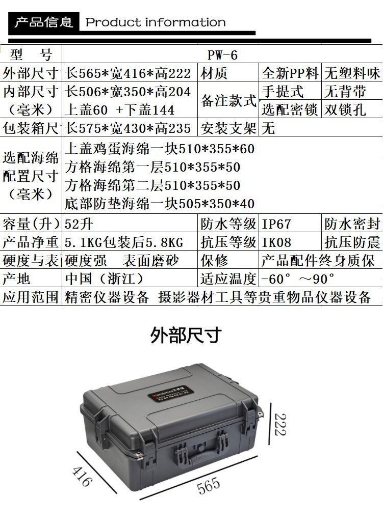 Wandebao PW-6 caixa vazia caixa de instrumentos de precisão caixa de segurança à prova de umidade caixa de equipamento impermeável protetora caixa de equipamento resistente à pressão