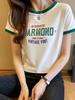 Camiseta feminina solta de manga curta, nova moda coreana, verão 2024, gola redonda, manga curta, blusa estampada, pulôver, camisa de base