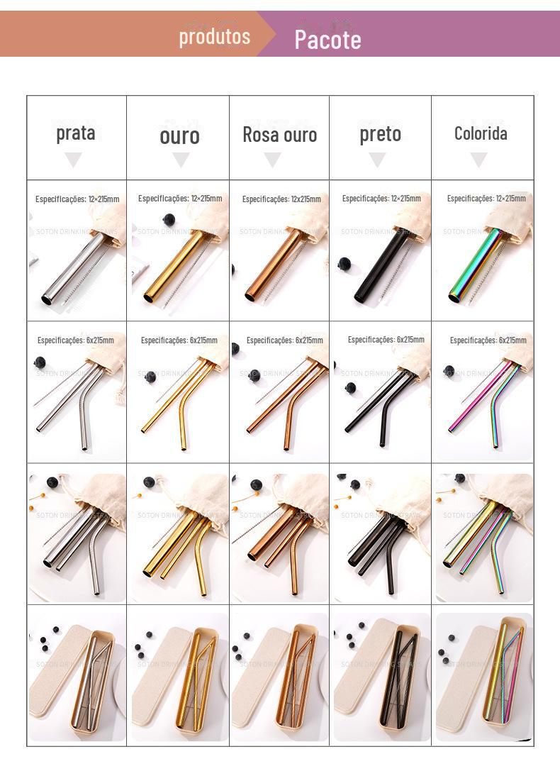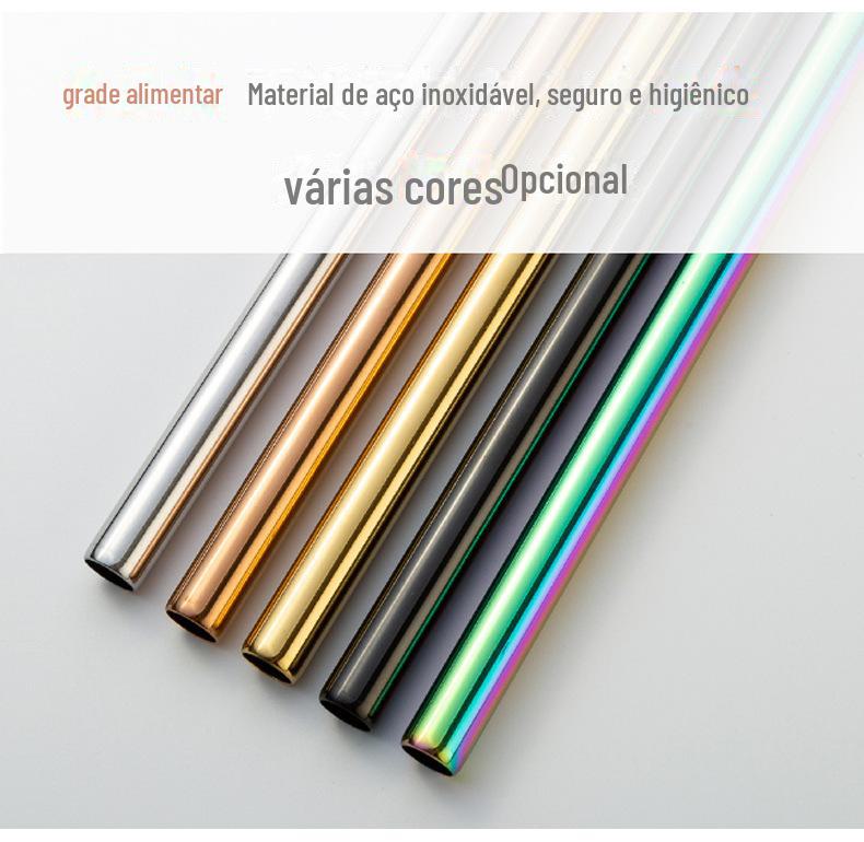 Grau alimentício criativo metal leite chá bebida café palha cor tubo reto saco 304 aço inoxidável terno de palha
