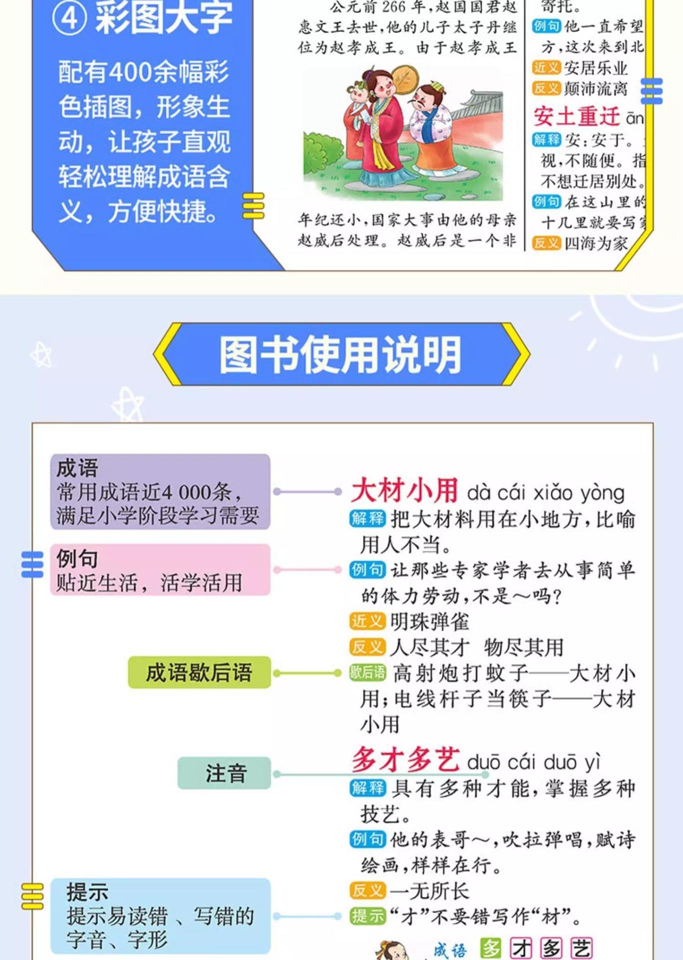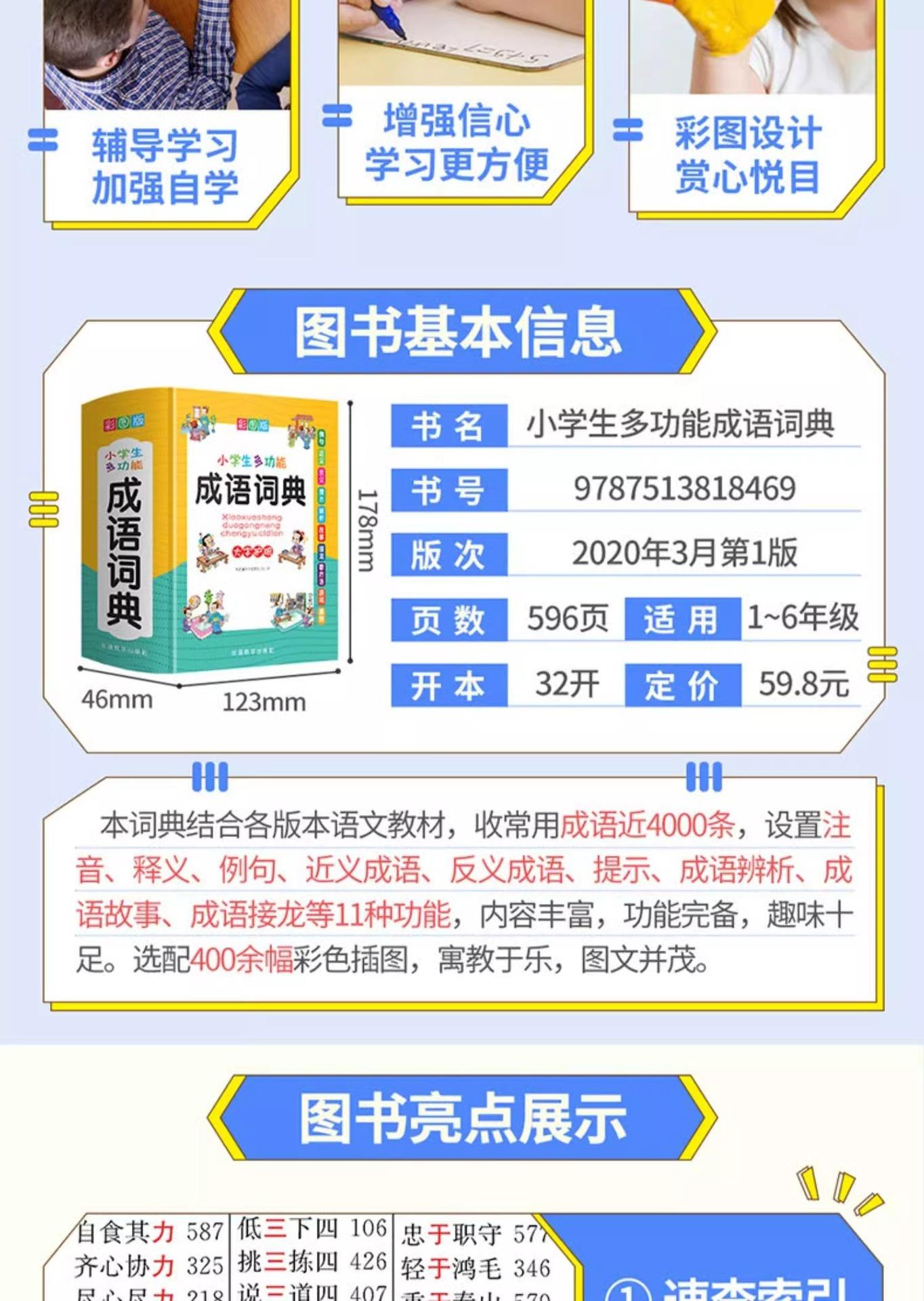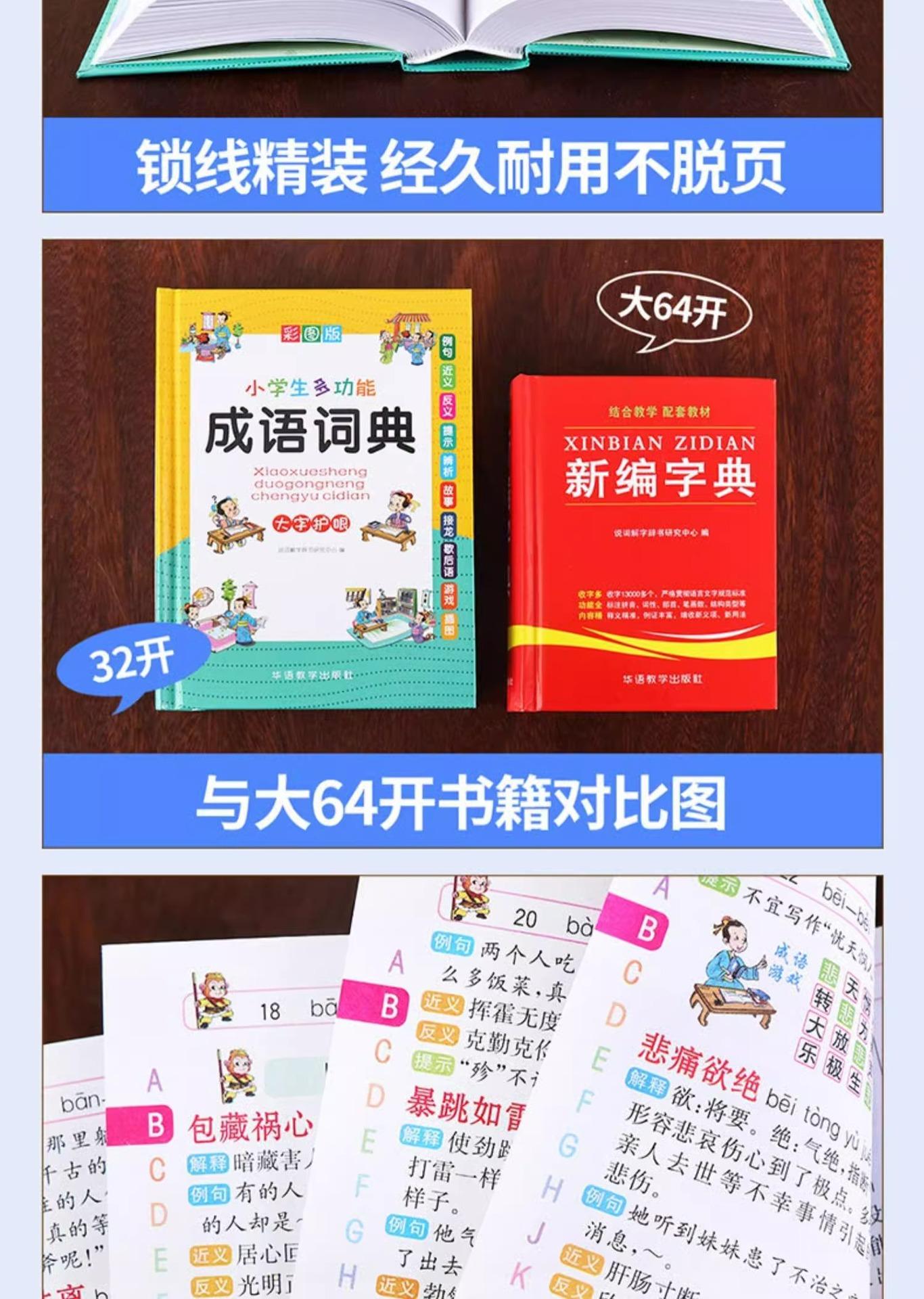 Dicionário de Idioma da Escola Primária Figura de Cores Multifuncional Edição de Caracteres Grandes Edição de Caracteres Chinês Moderno Dicionário Xinhua Língua de quatro caracteres Livro de História