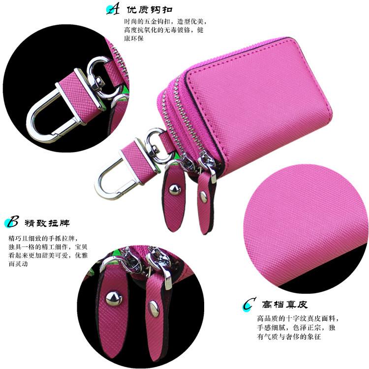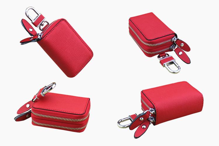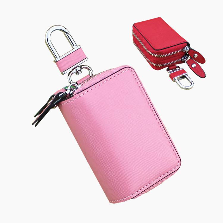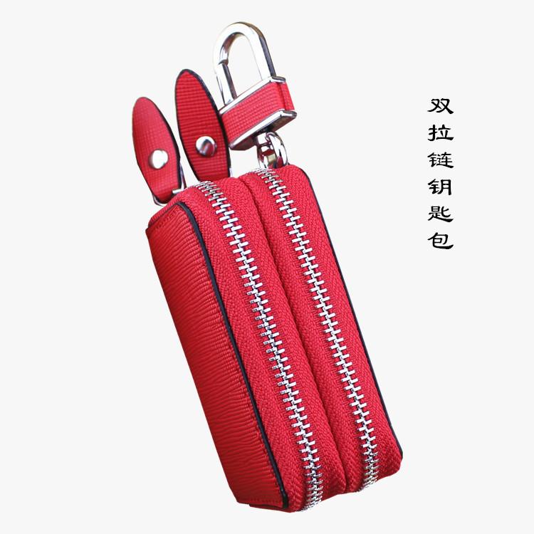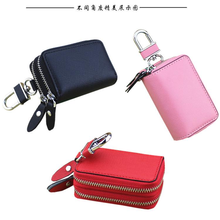 Popular Padrão Cruz Transfronteiriço Couro Genuíno Porta-Chaves Popular Novo Zíper Dupla Camada Bolsa para Chaves de Carro Venda Direta da Fábrica