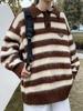 Suéter listrado de gola polo suéter de inverno engrossado design de moda retrô marca casaco de suéter