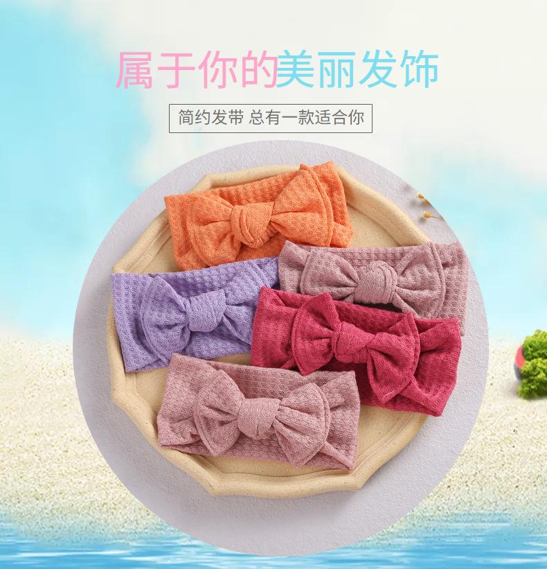 Faixa de cabelo infantil por atacado transfronteiriça, faixa de cabelo de tecido de cor sólida, feita à mão, europeia e americana, grande borboleta, aba larga, faixa de cabelo de bebê