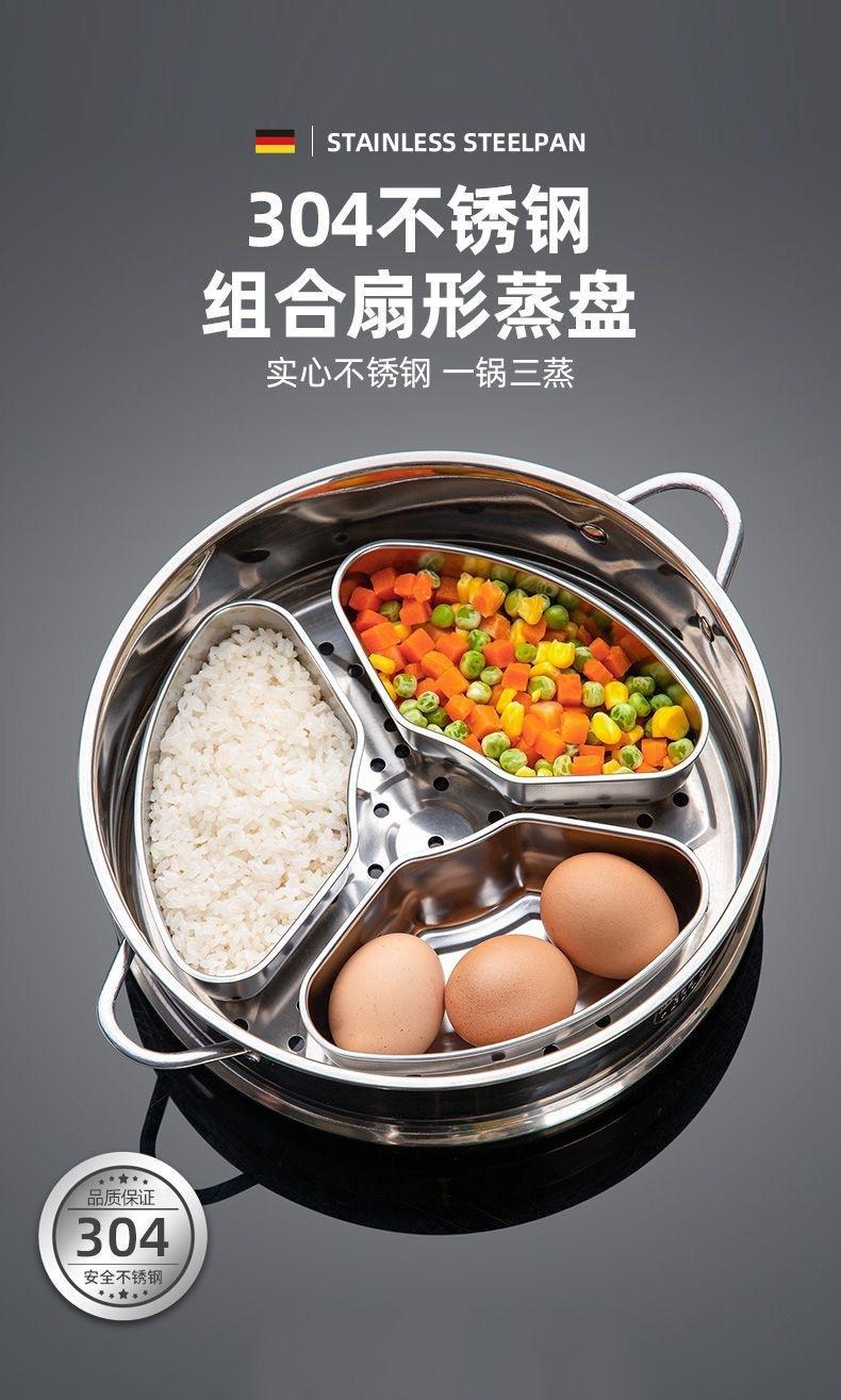 Aço inoxidável 304 em forma de ventilador vapor doméstico panela de arroz vapor cozinha suplemento alimentar caixa de armazenamento crocante