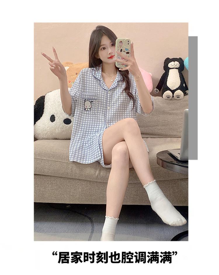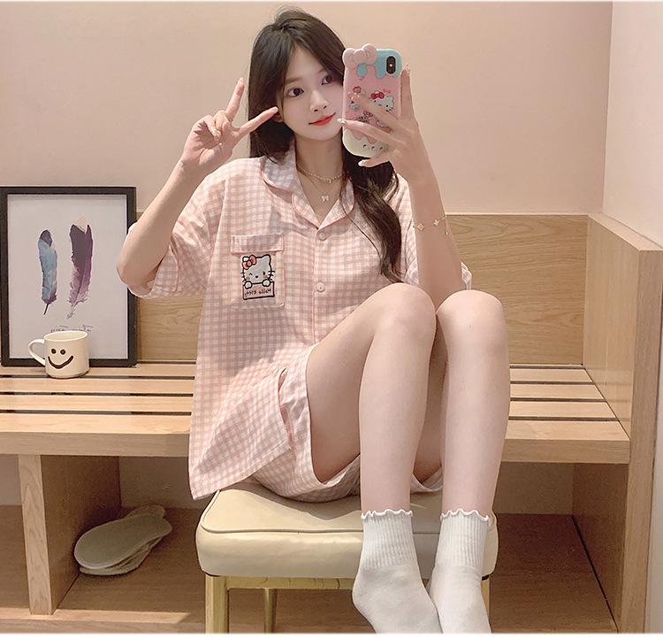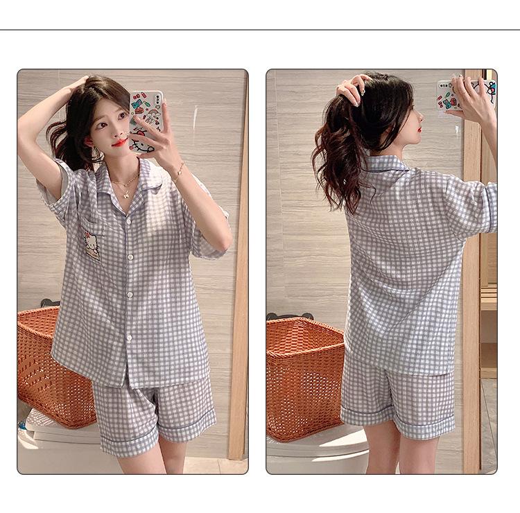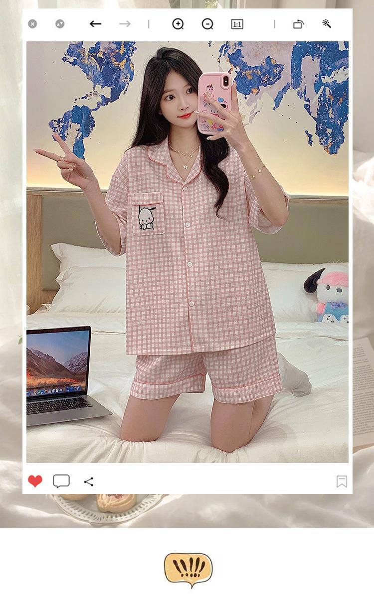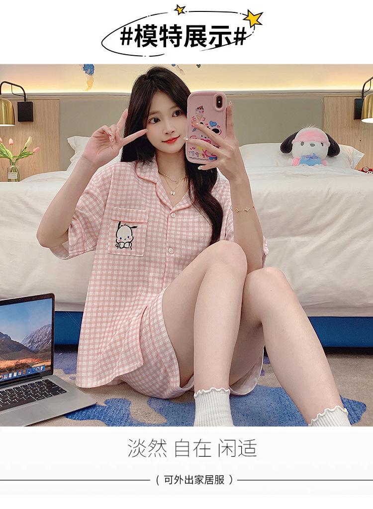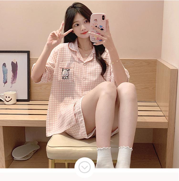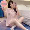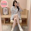 Compre Pijama feminino de verão, cardigan fofo com lapela e bojo, manga curta, shorts plus size, roupas para casa para meninas gordinhas no atacado no Joom.pro