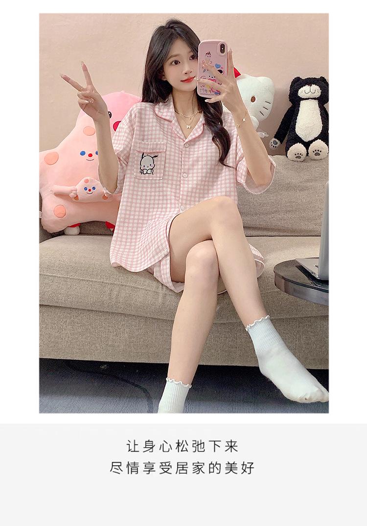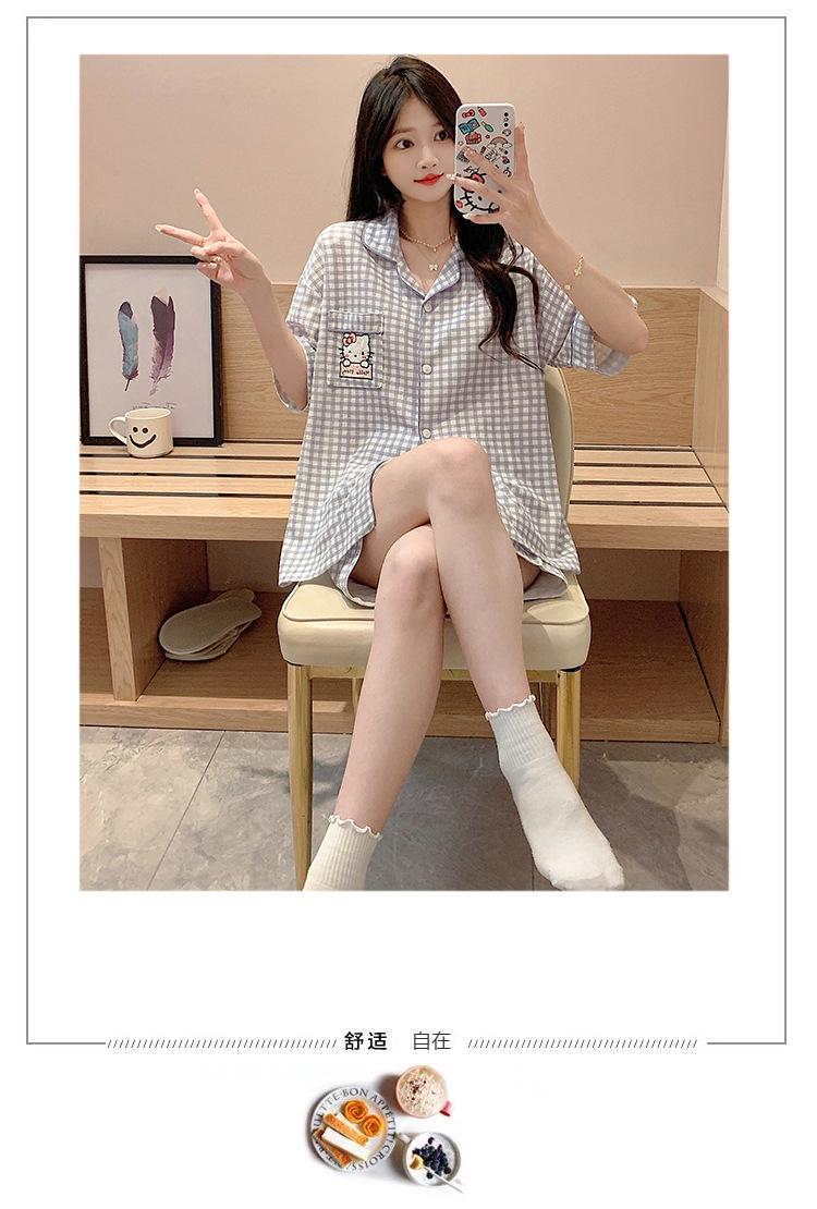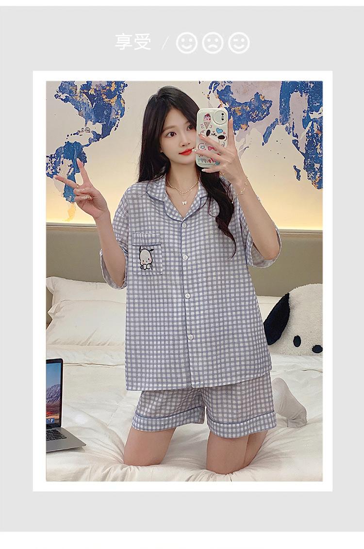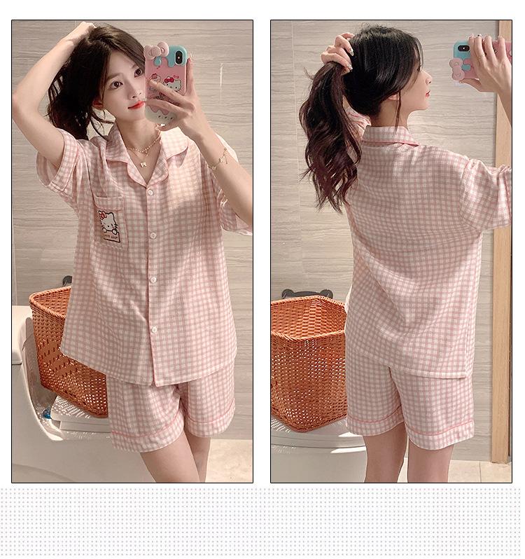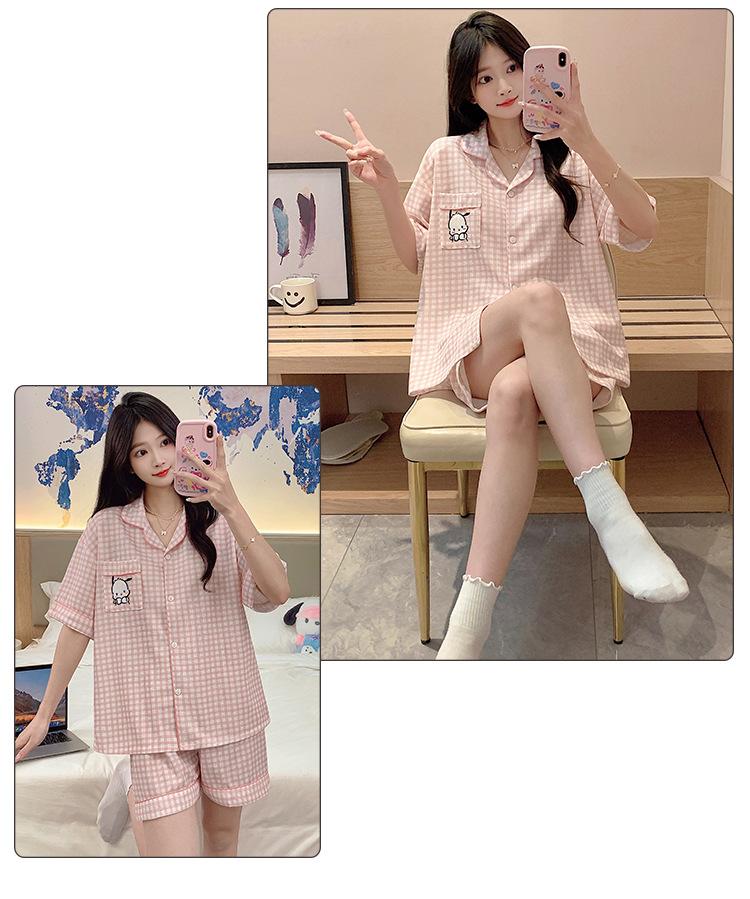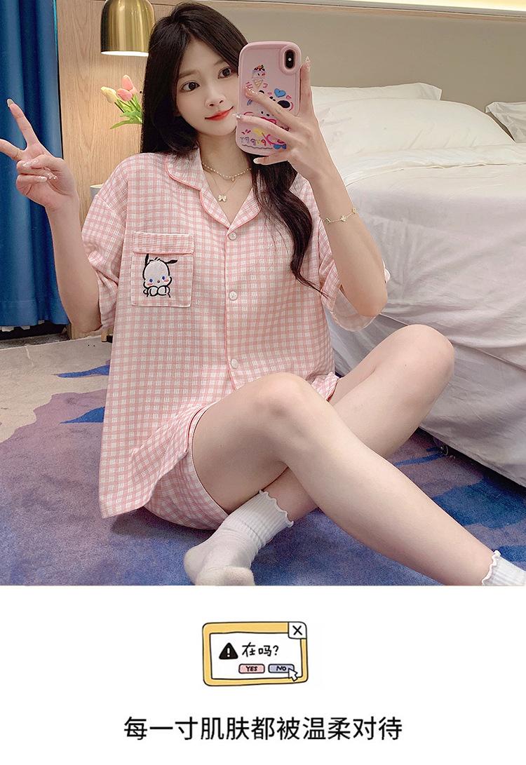 Compre Pijama feminino de verão, cardigan fofo com lapela e bojo, manga curta, shorts plus size, roupas para casa para meninas gordinhas no atacado no Joom.pro