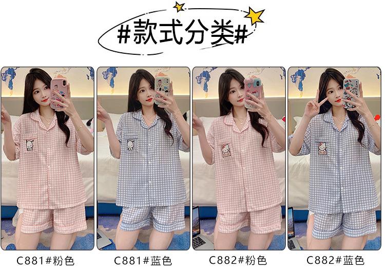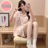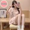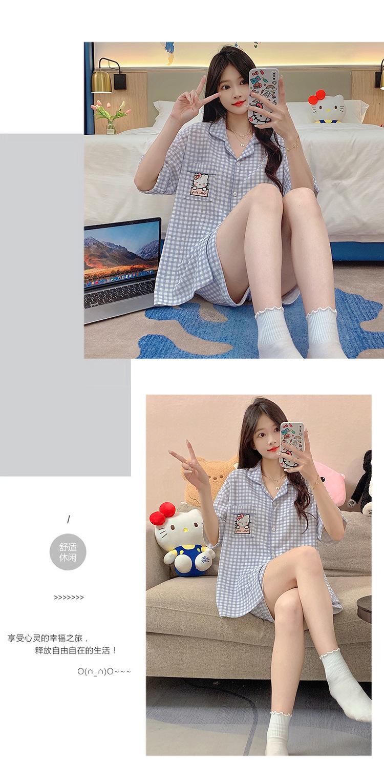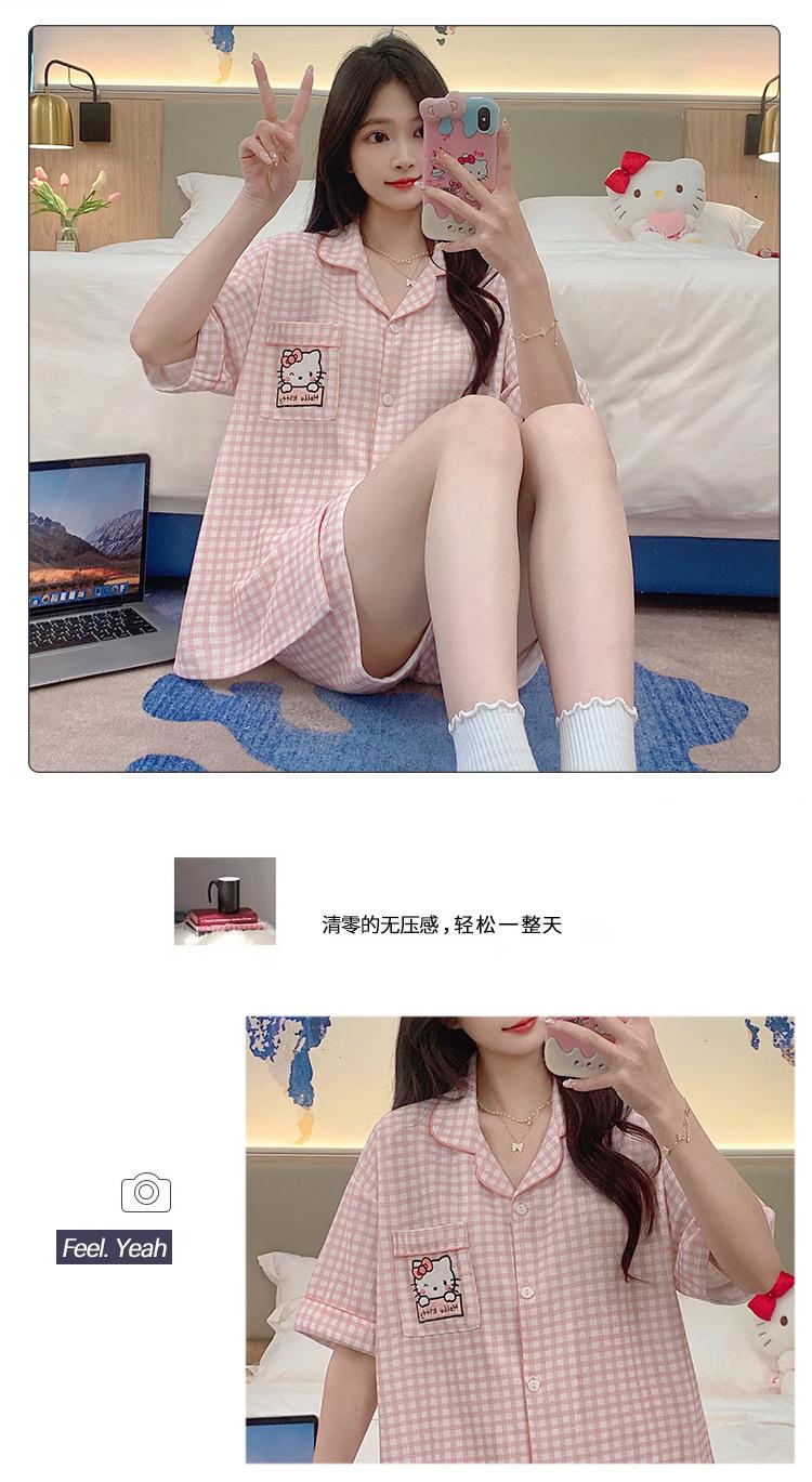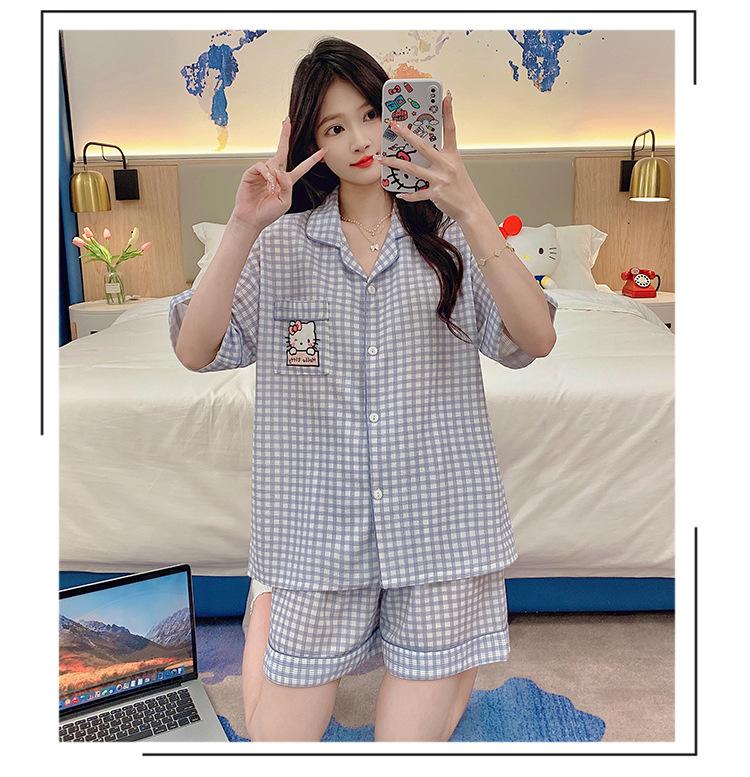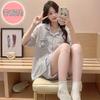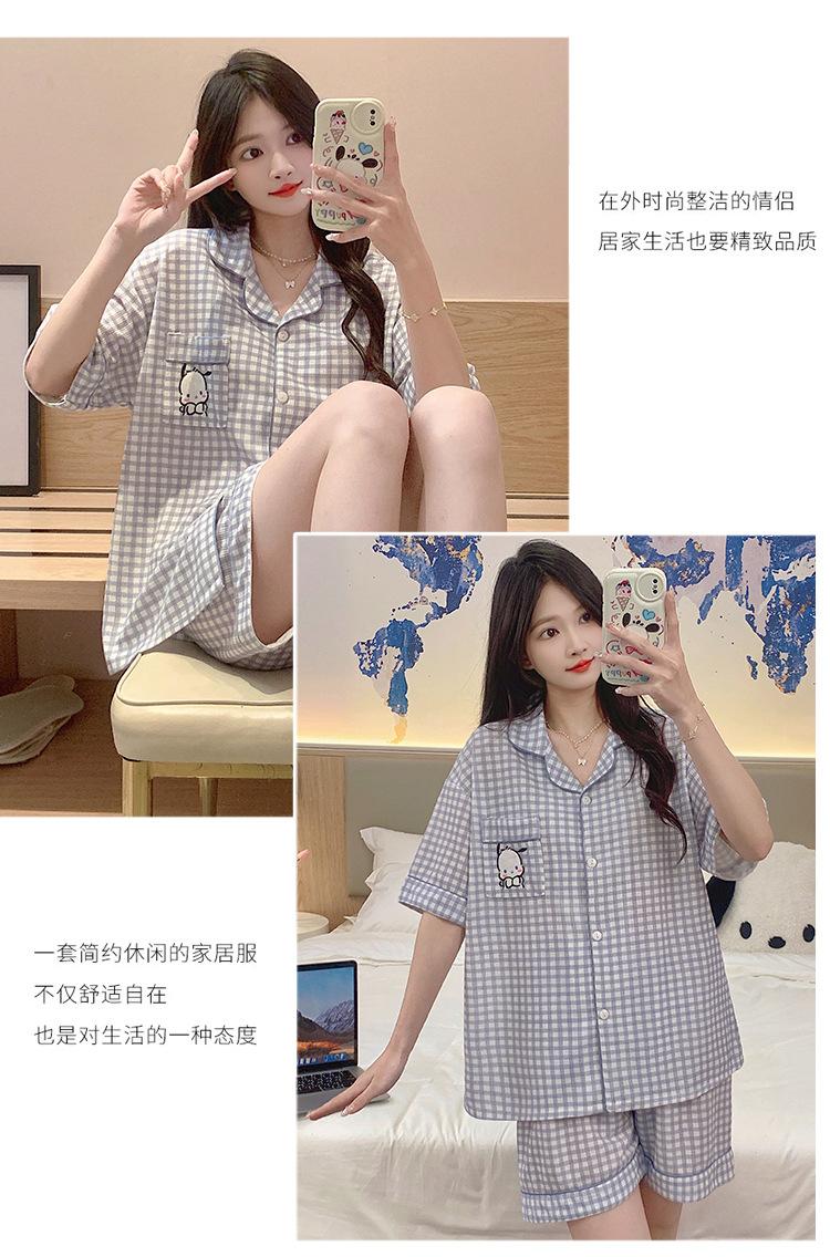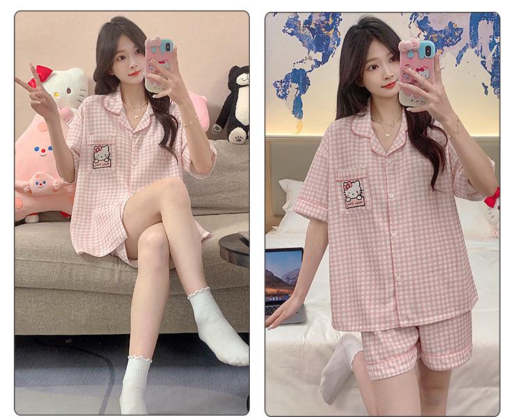 Compre Pijama feminino de verão, cardigan fofo com lapela e bojo, manga curta, shorts plus size, roupas para casa para meninas gordinhas no atacado no Joom.pro