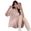Pijama feminino de verão, cardigan fofo com lapela e bojo, manga curta, shorts plus size, roupas para casa para meninas gordinhas