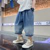 Marca da Moda Jeans Azul Degradê para Meninos Verão 2025 Nova Calça Capri Solta Calça Fina Infantil Grande