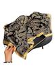 Cachecol de seda preto dourado com flor de caju e amoreira, moda feminina de outono, elegante, combinando, 70 cm, lenço quadrado de seda