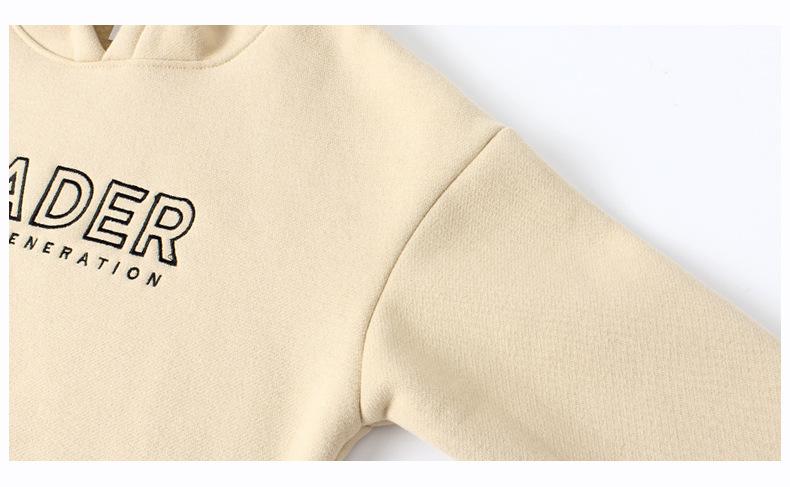 Versão coreana de outono e inverno do novo suéter infantil com forro de lã, jaqueta quente casual infantil grande, suéter com capuz para meninos, atacado