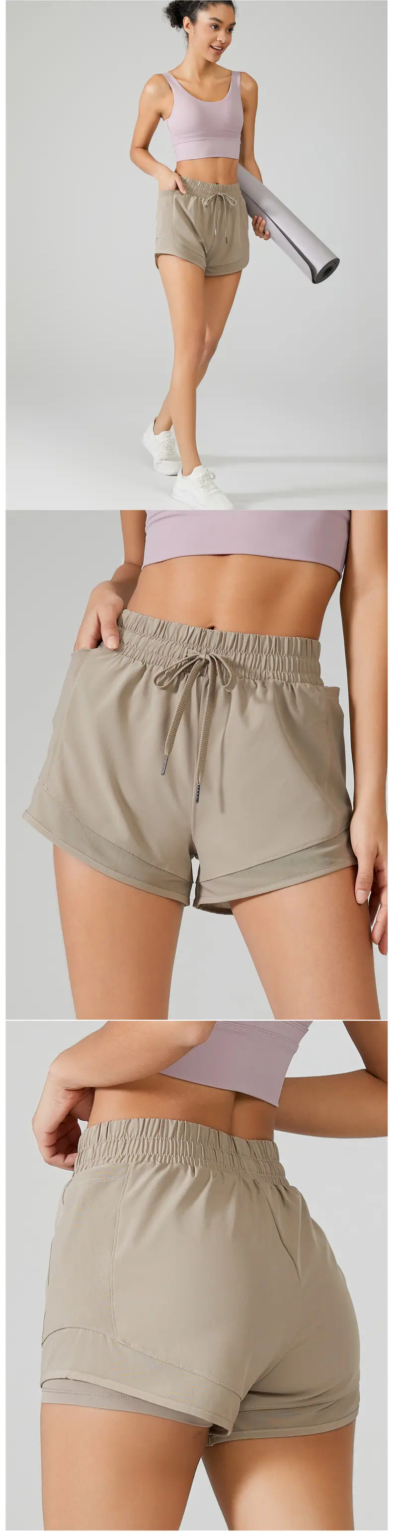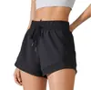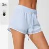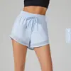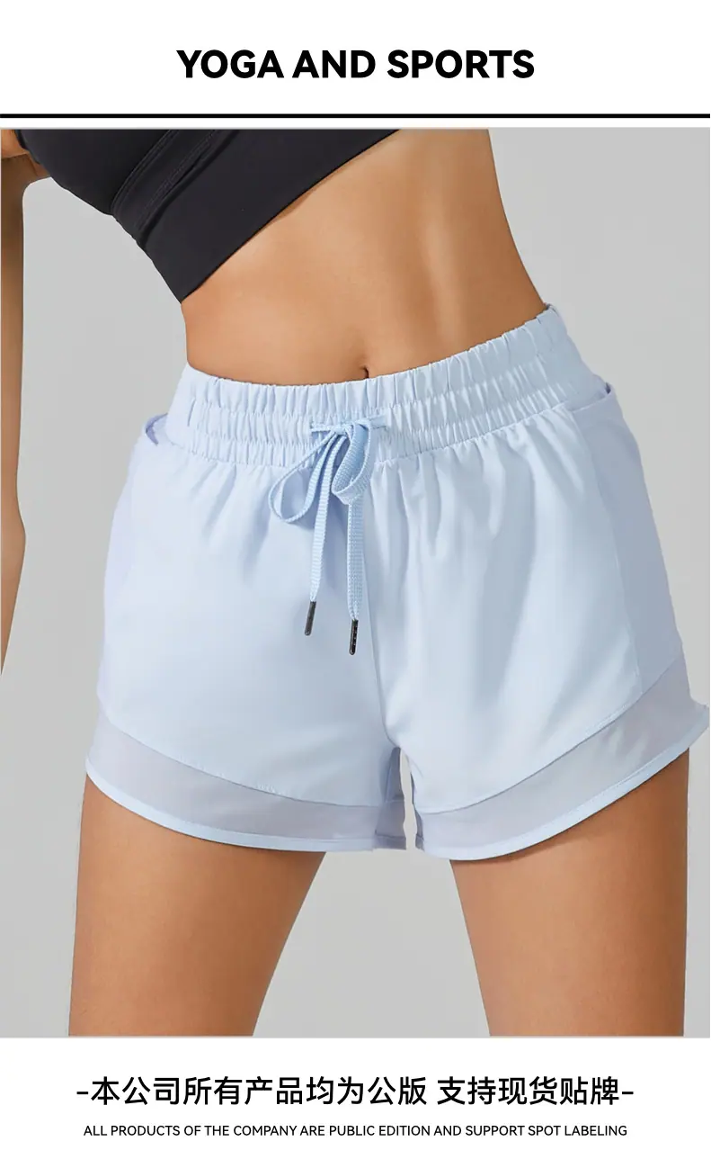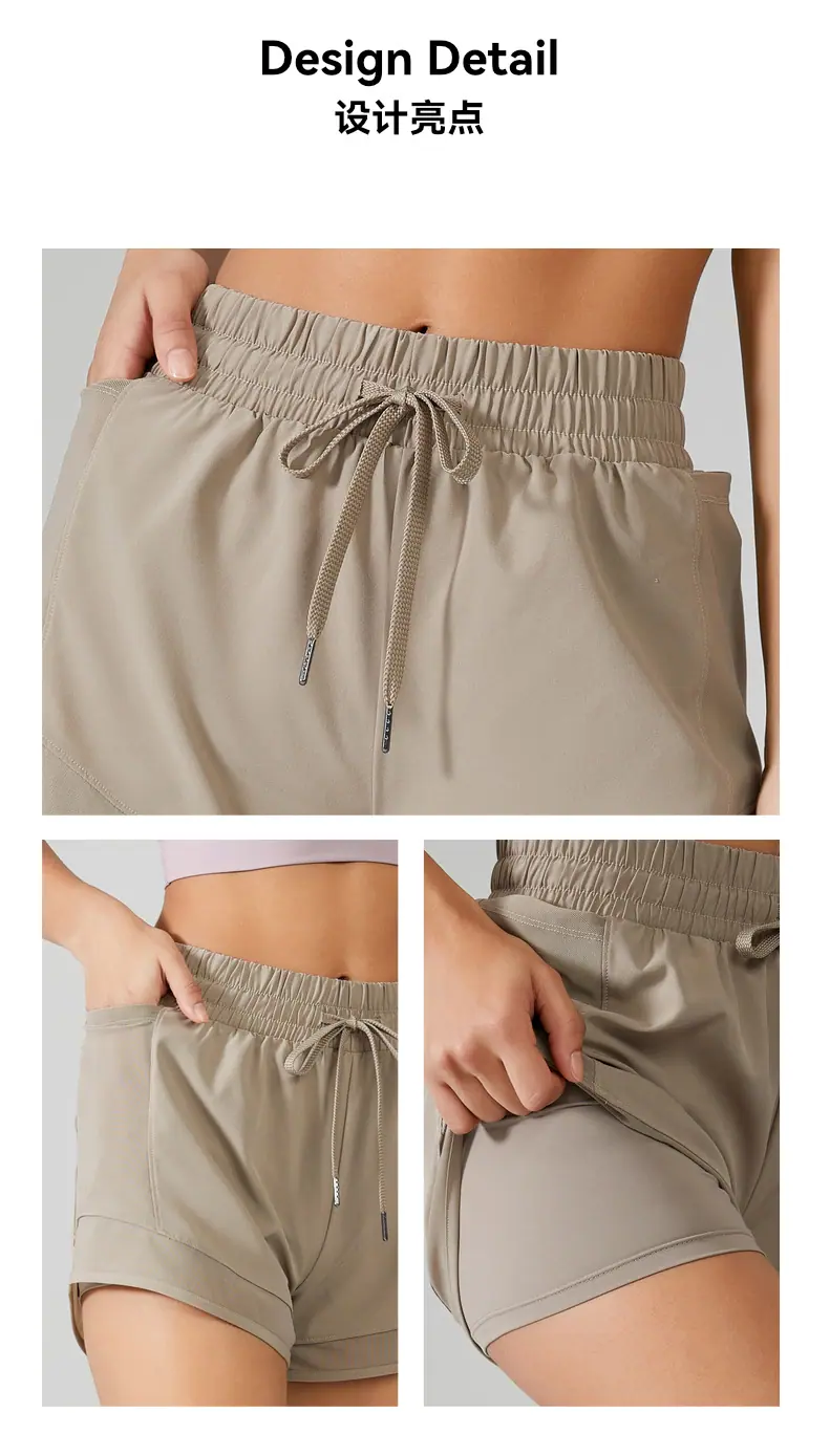 Shorts Esportivos de Yoga Transfronteiriços para Mulheres, Calça de Corrida Solta de Secagem Rápida Anti-Exposição com Bolsos, Shorts de Academia Falsos de Duas Peças
