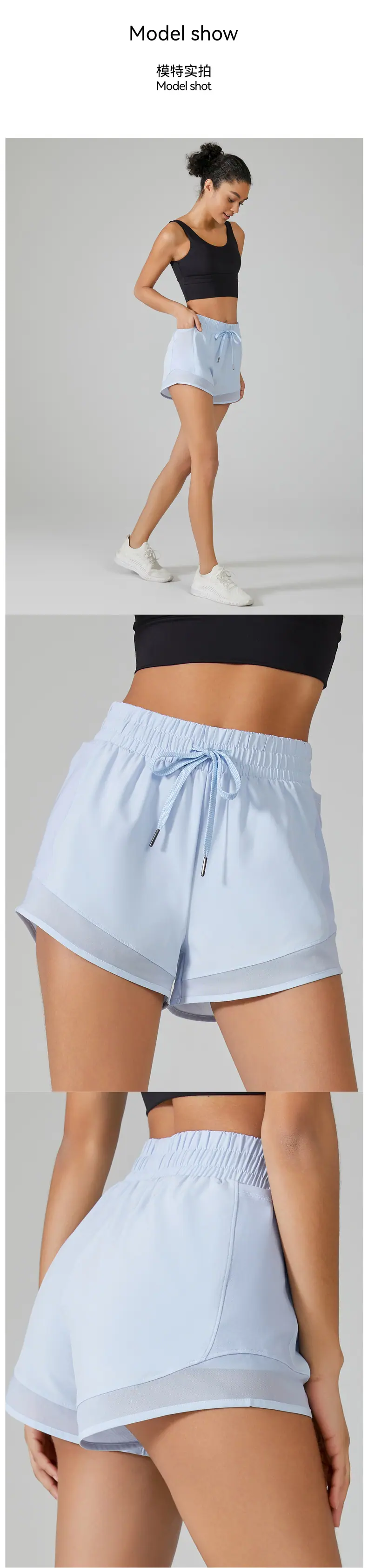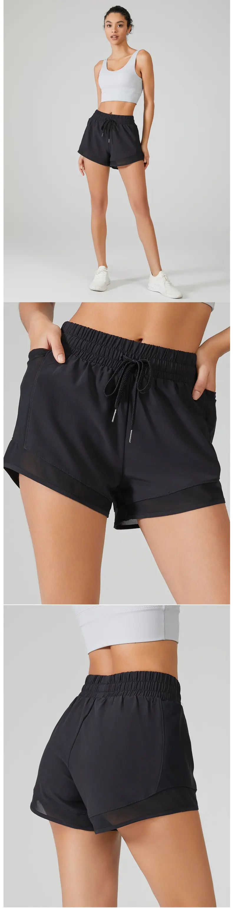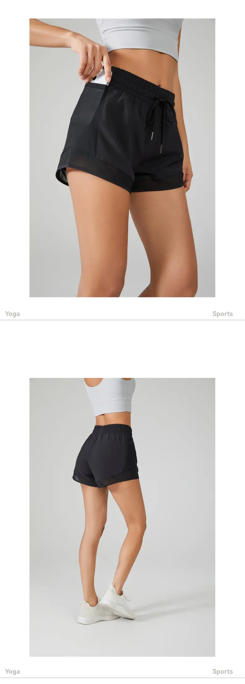 Shorts Esportivos de Yoga Transfronteiriços para Mulheres, Calça de Corrida Solta de Secagem Rápida Anti-Exposição com Bolsos, Shorts de Academia Falsos de Duas Peças