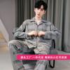 Diretamente do Fabricante, Pijama Masculino de Primavera e Outono, Manga Comprida, Fino, Estilo Lapela, Imitação Algodão Seda Leite, Roupa de Descanso Casual, Estilo Casual