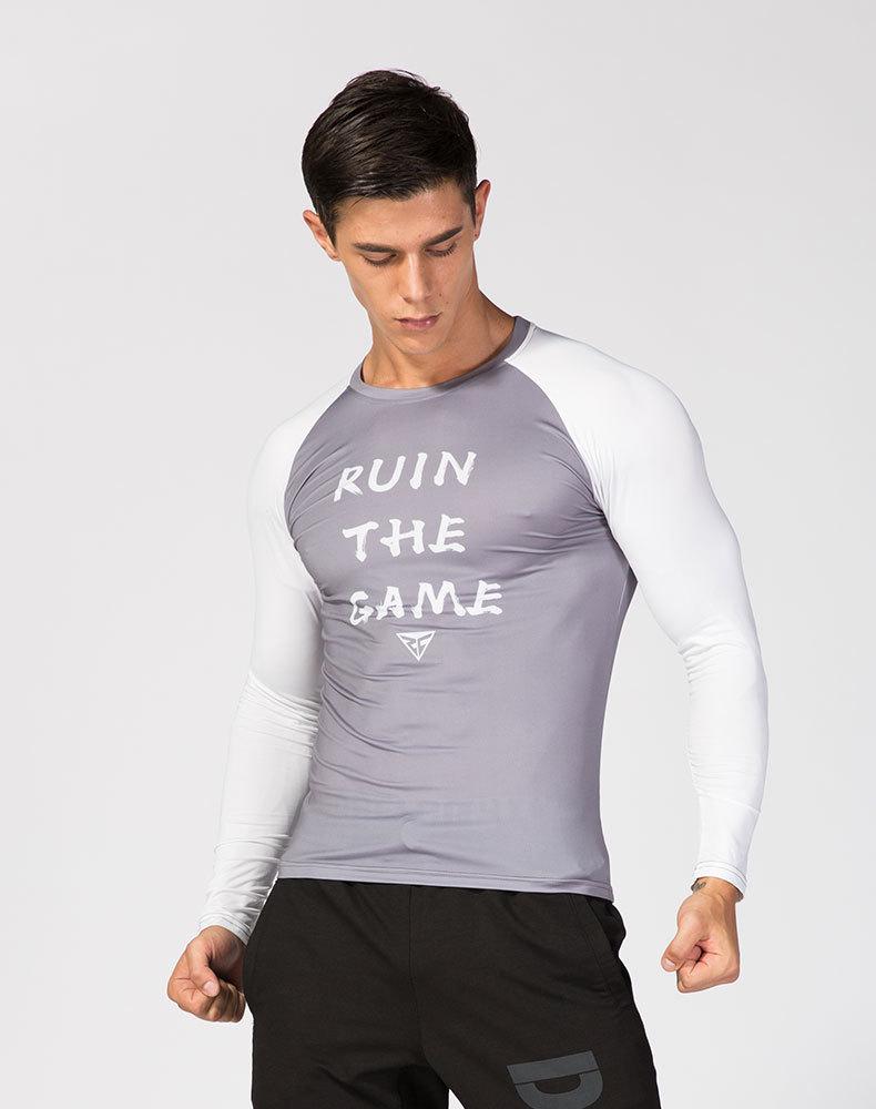 Compre T-shirt de treino masculina outono de secagem rápida manga comprida T-shirt compressão alongamento cor apertada combinando esportes fitness roupas moda no atacado no Joom.pro
