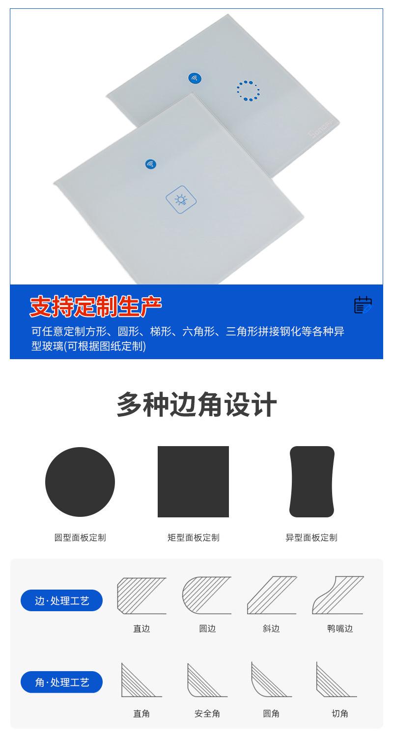 Painel de vidro temperado com impressão de tela de toque de interruptor eletrônico inteligente, processamento personalizado