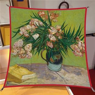 | Arte van gogh pintura a óleo flor cachecol primavera e verão viagem proteção solar lenço de seda decorativo grande lenço quadrado |